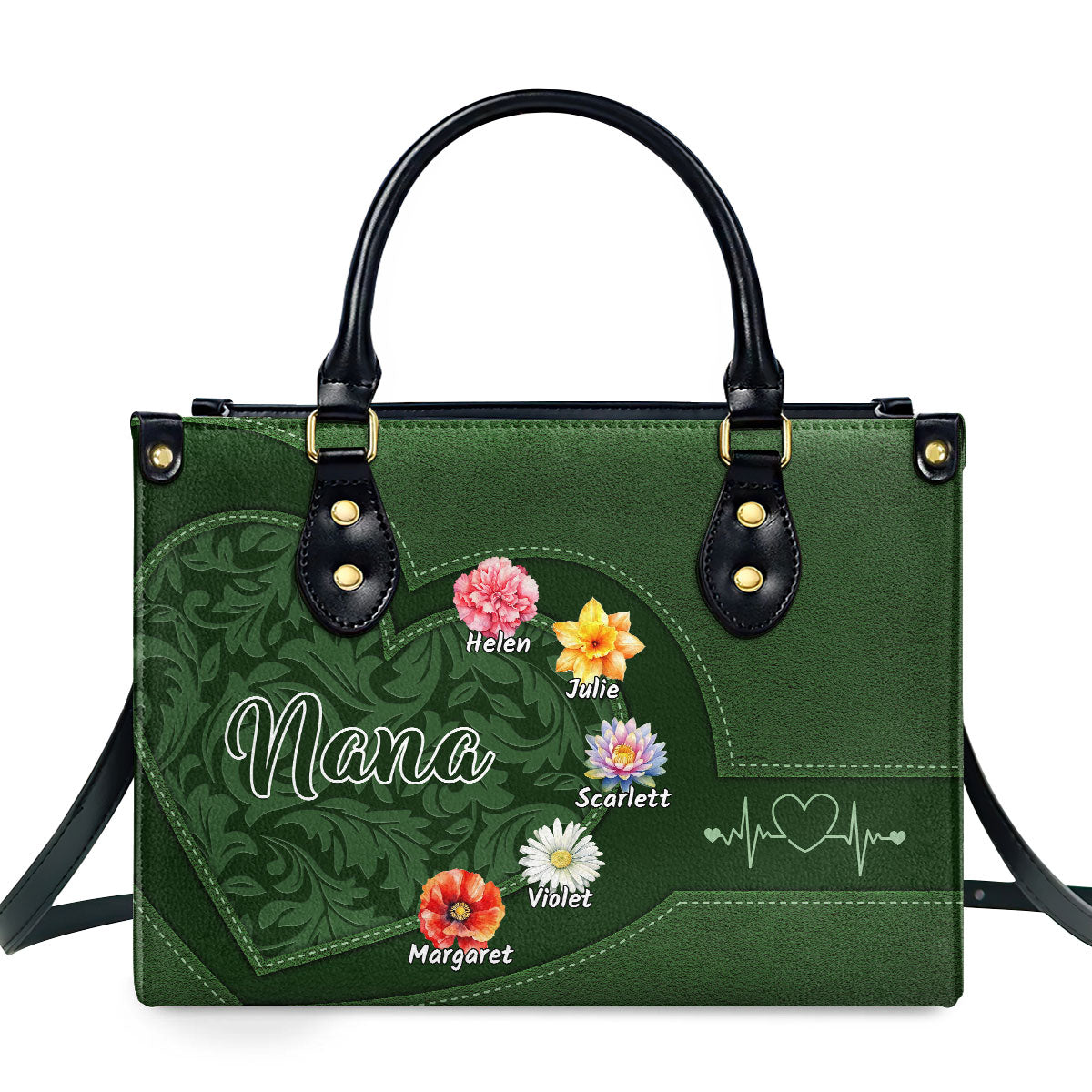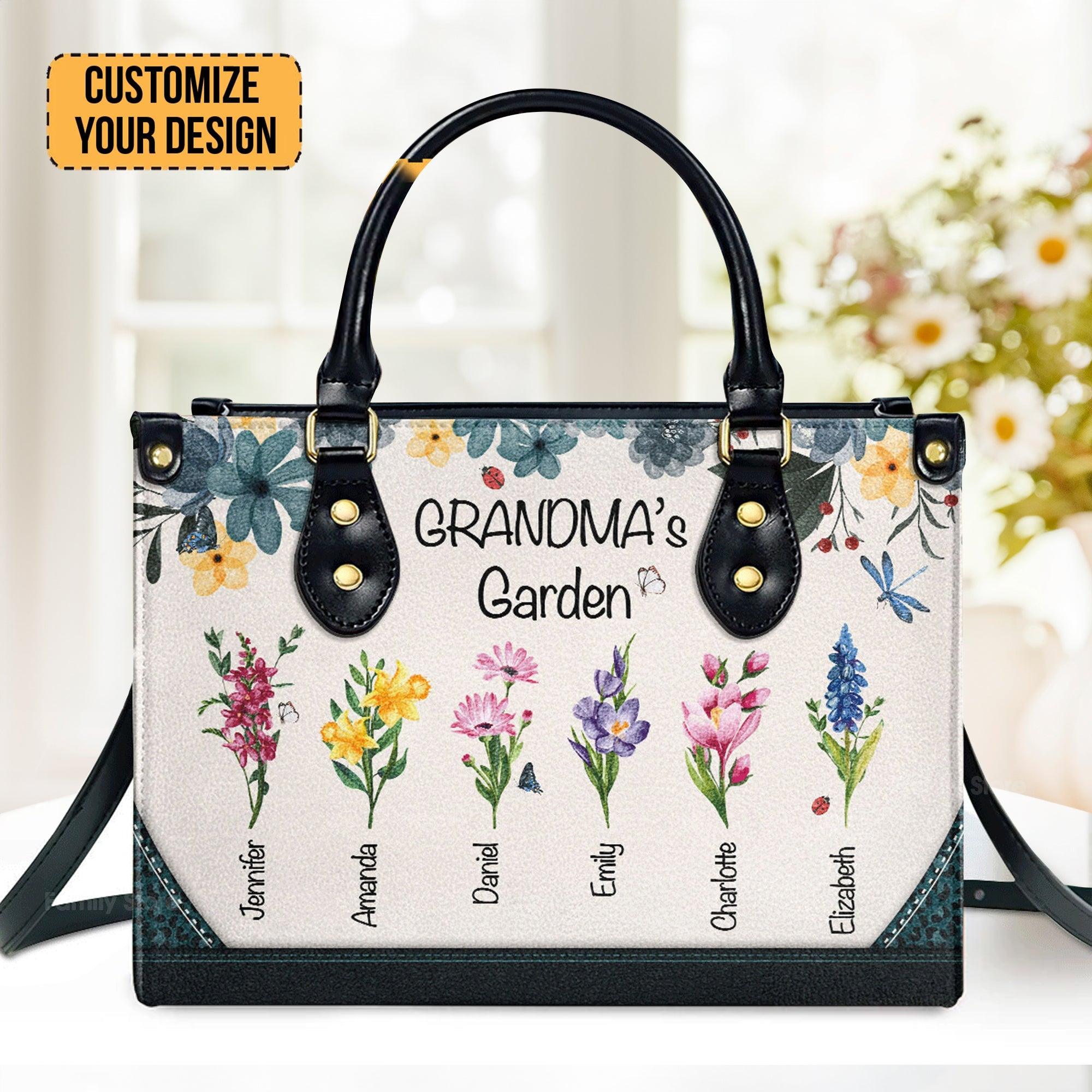 Grandma Flower Personalized Leather Hand Bag