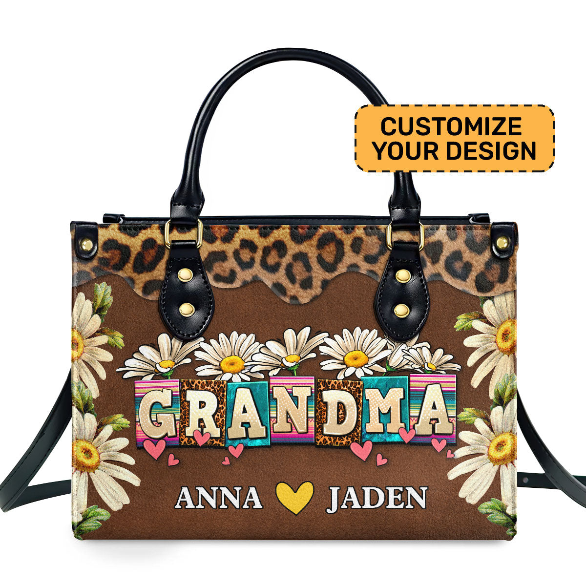 Grandma Daisy Personalized Leather Hand Bag