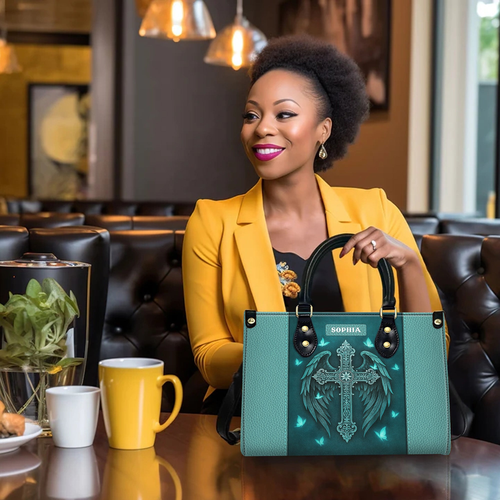 Guardian Angel Wings Cross Personalized Leather Handbag