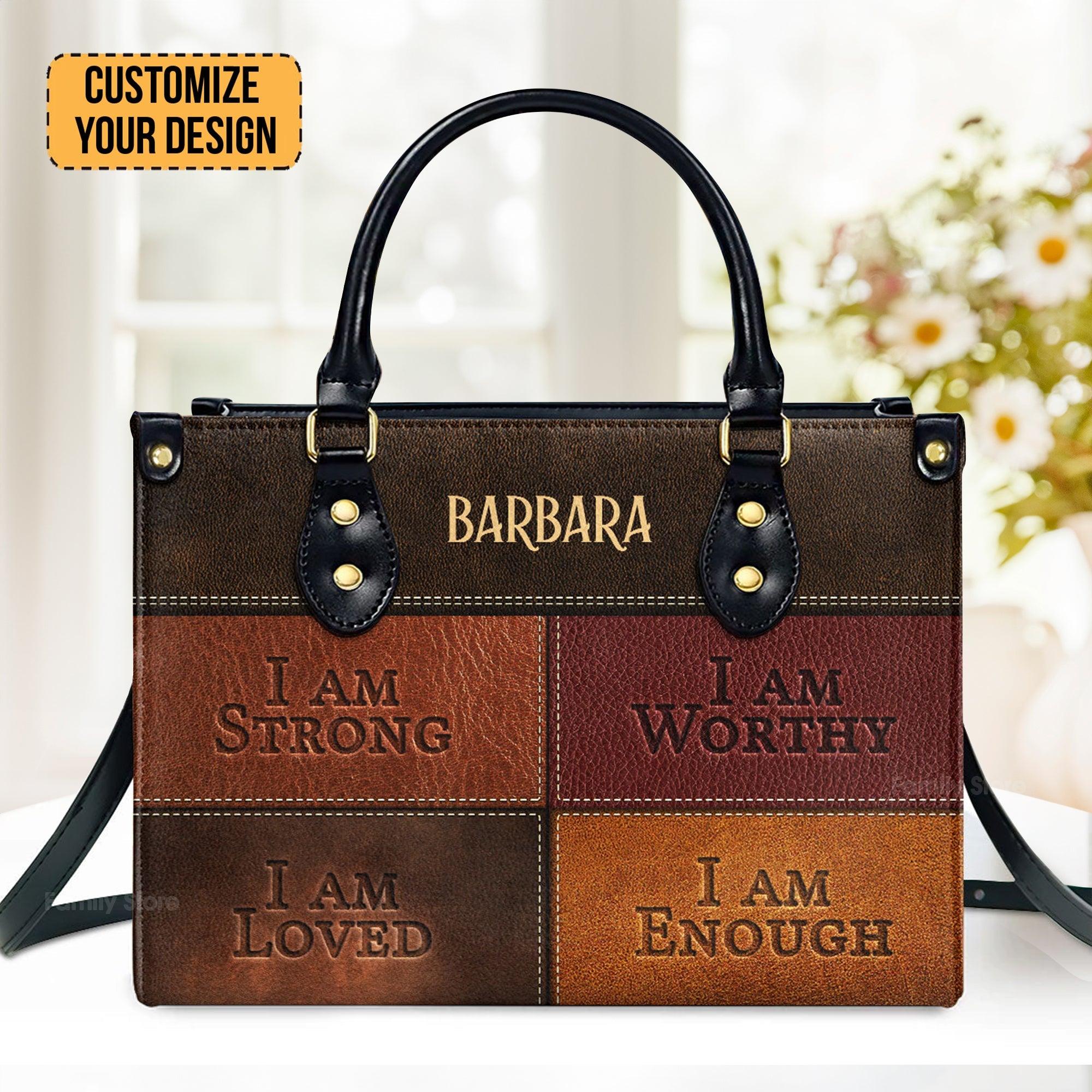 I Am Strong I Am Worthy Personalized Leather Hand Bag