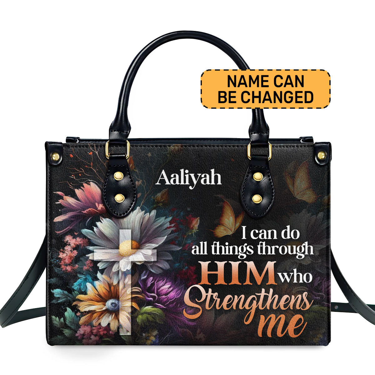 I Can Do All Things Through Him Personalized Leather Handbag