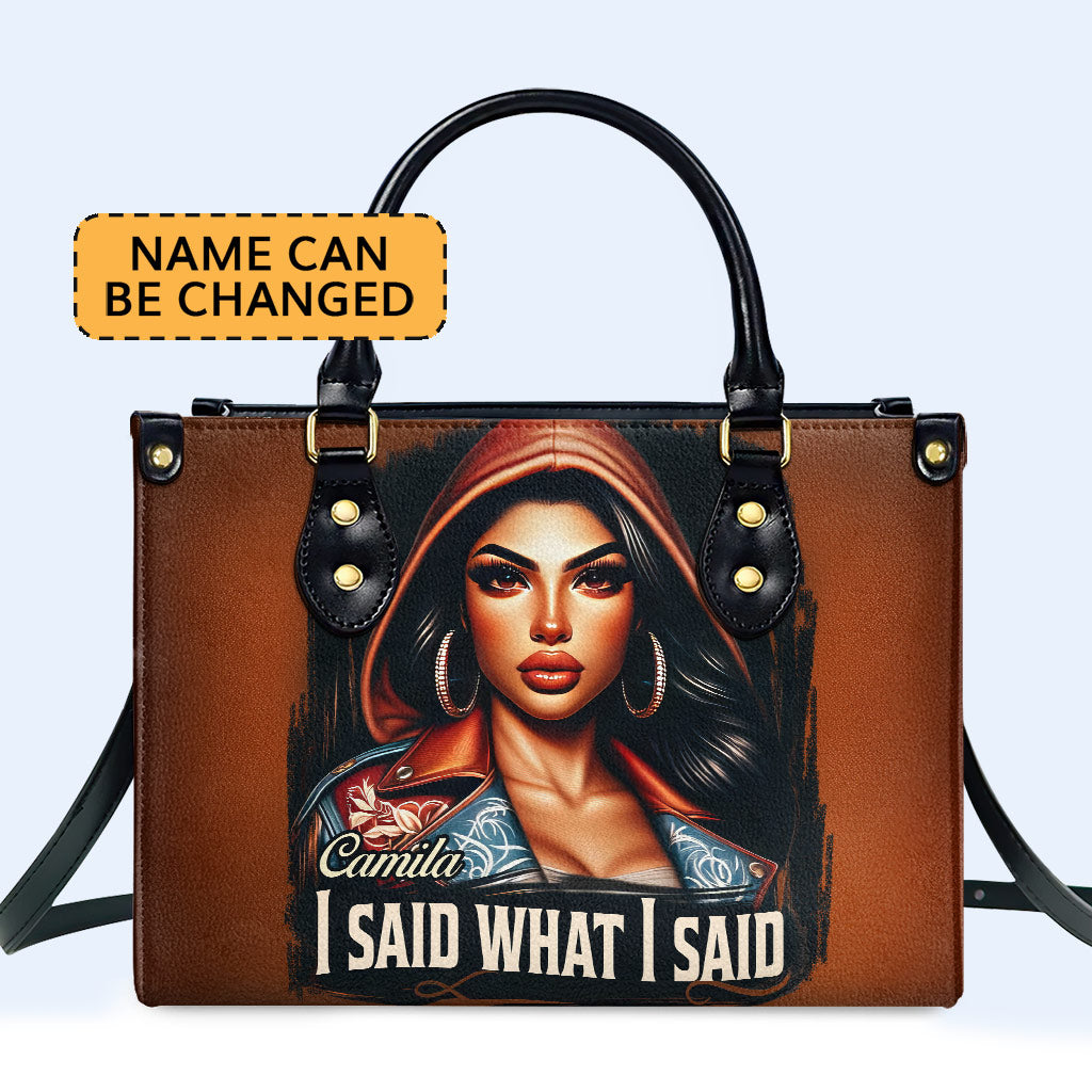 I Said What I Said Personalized Custom Leather Handbag