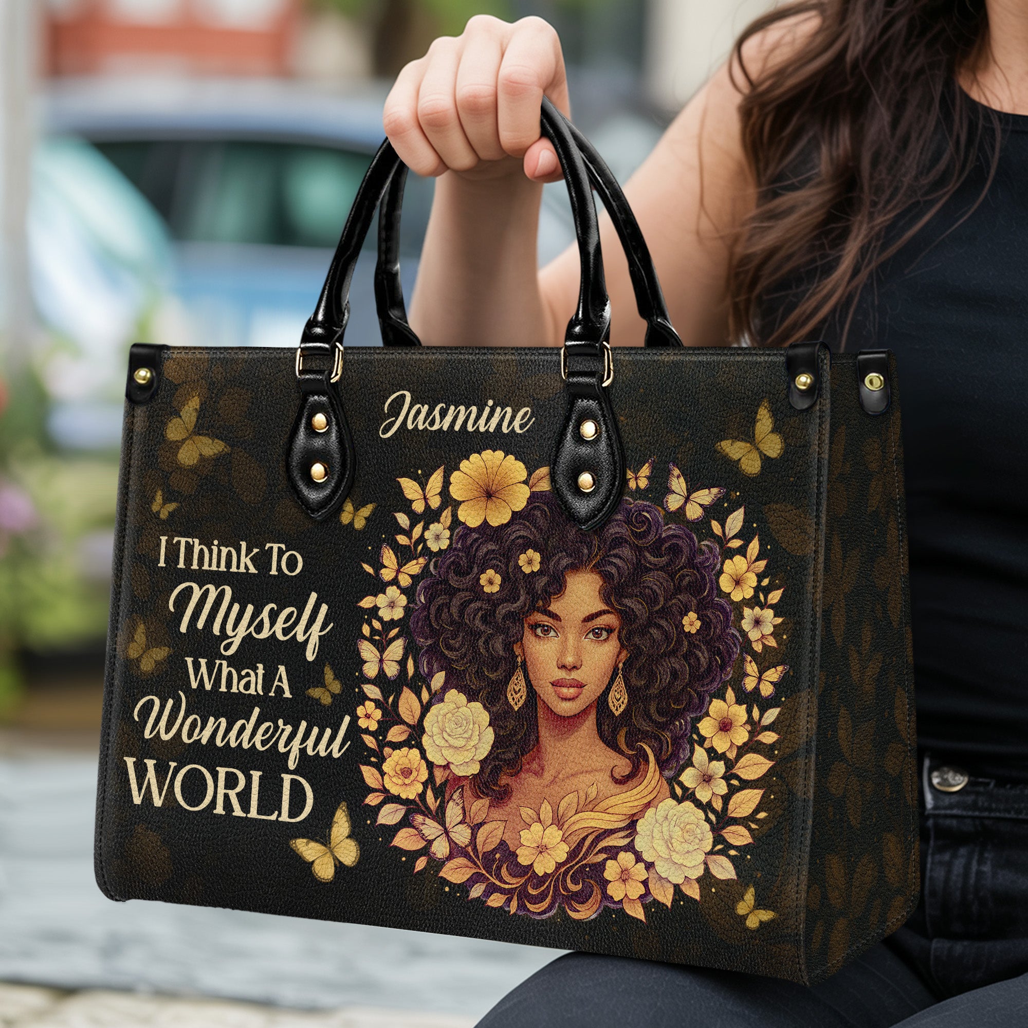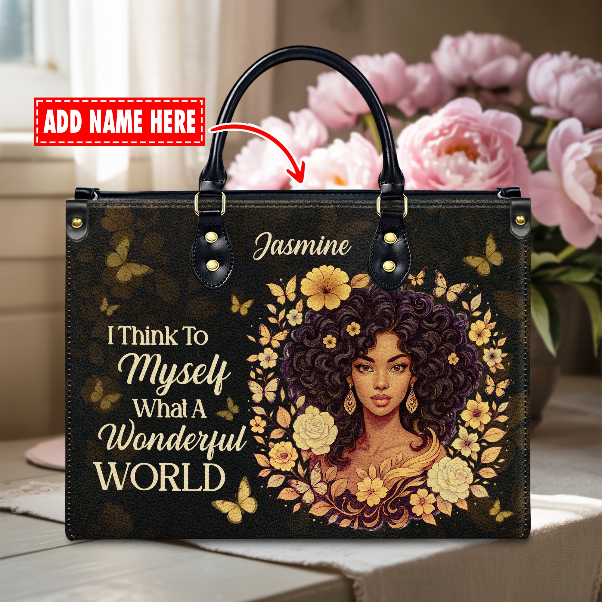 I Think To Myself What A Wonderful World Personalized Leather Hand Bag