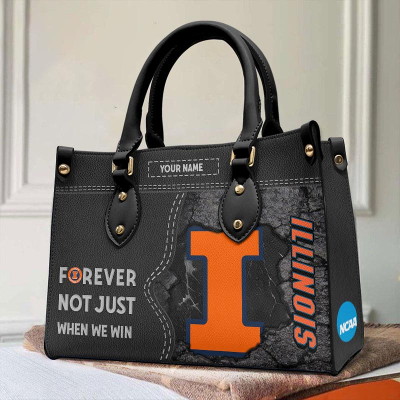 Illinois Fighting Illini Forever Not Just When We Win Leather Hand Bag