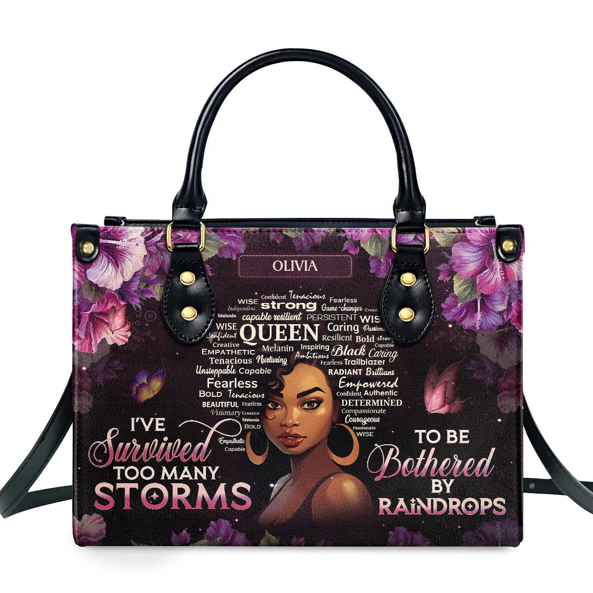 I’ve Survived Too Many Storms Resilient Warrior Personalized Leather Handbag Empowering Women