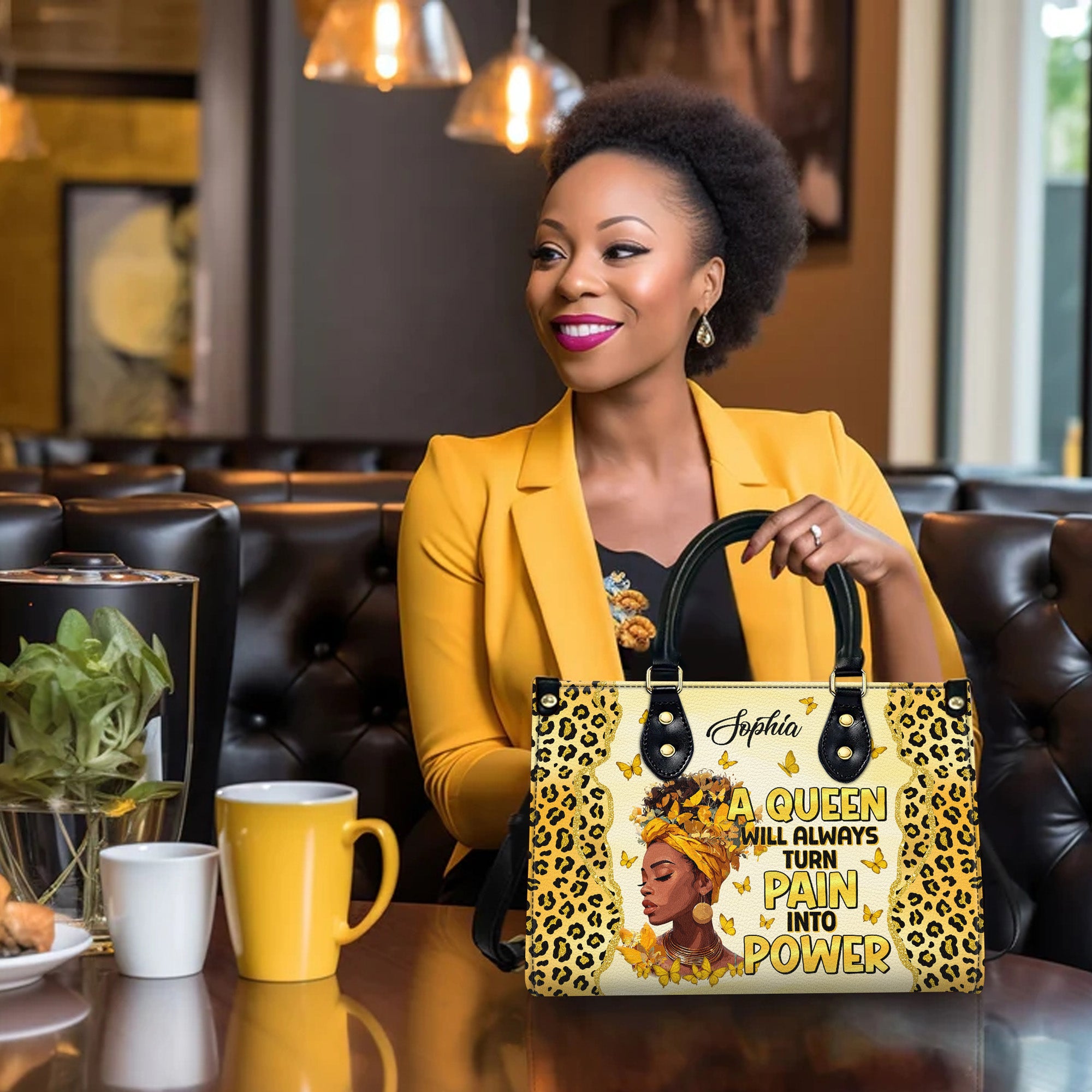 A Queen Will Always Turn Pain Into Power Personalized Leather Handbag
