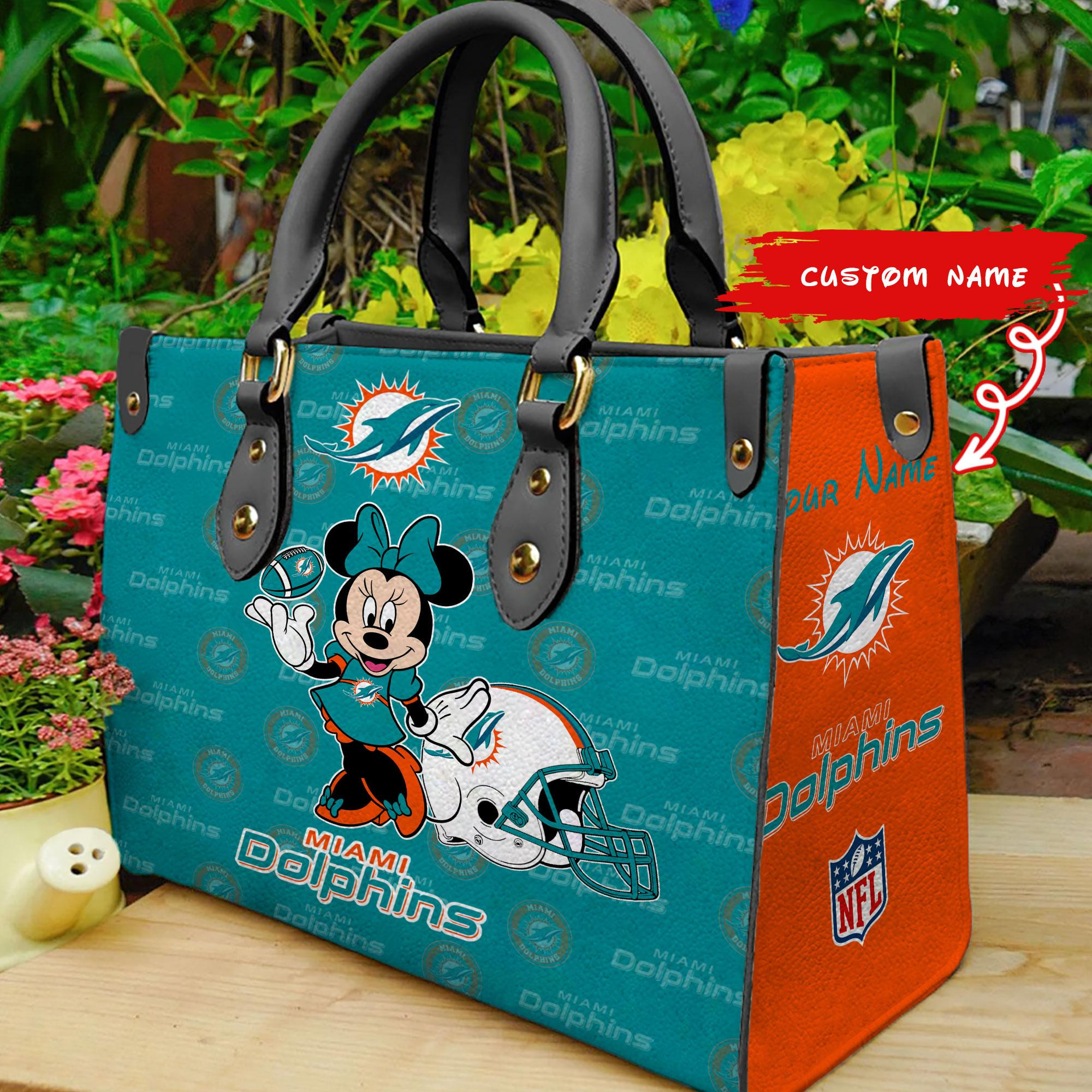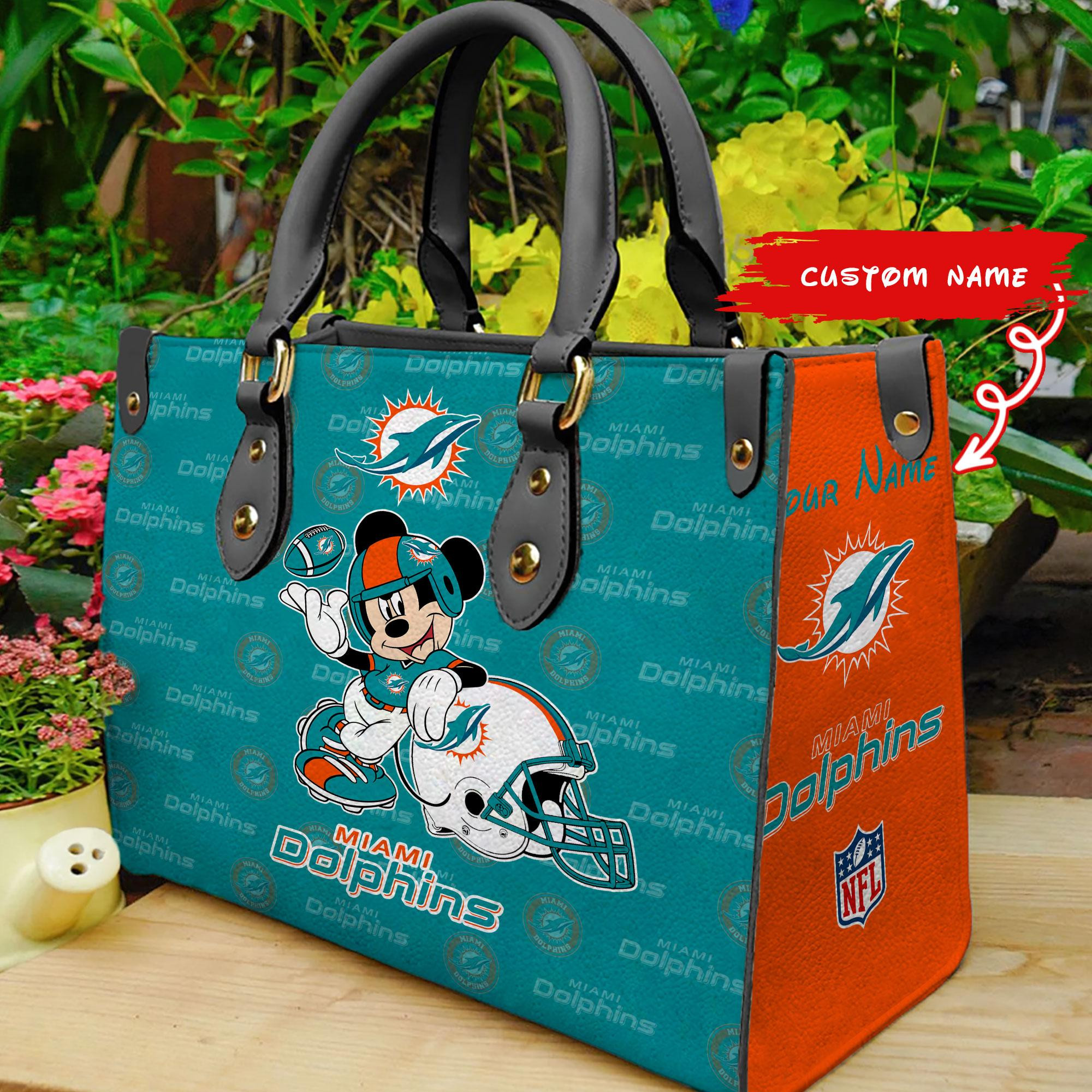 Miami Dolphins Stitch Personalized Leather Hand Bag