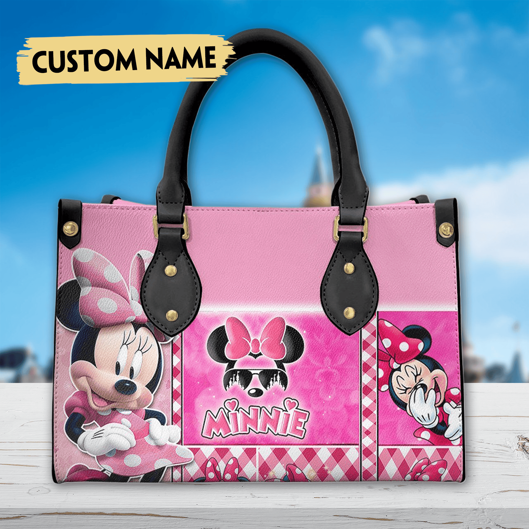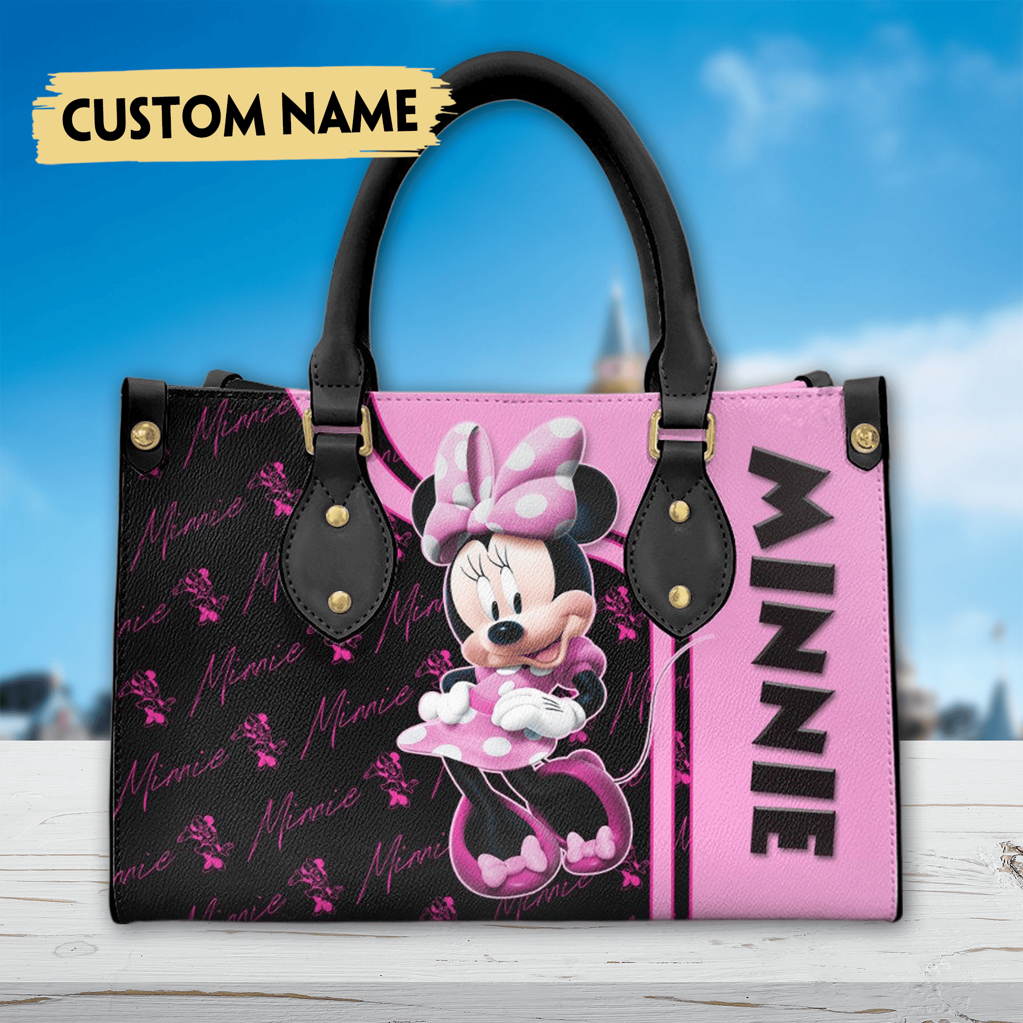 Minnie Mouse Cute Custom Name Women Leather Handbags, Crossbody Shoulder Bag Lady Simple Style