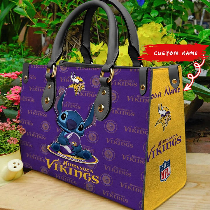 Minnesota Vikings Stitch Personalized Leather Hand Bag