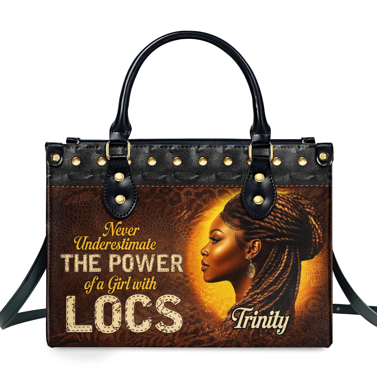 Never Underestimate The Power Of A Girl With Locs Personalized Leather Handbag