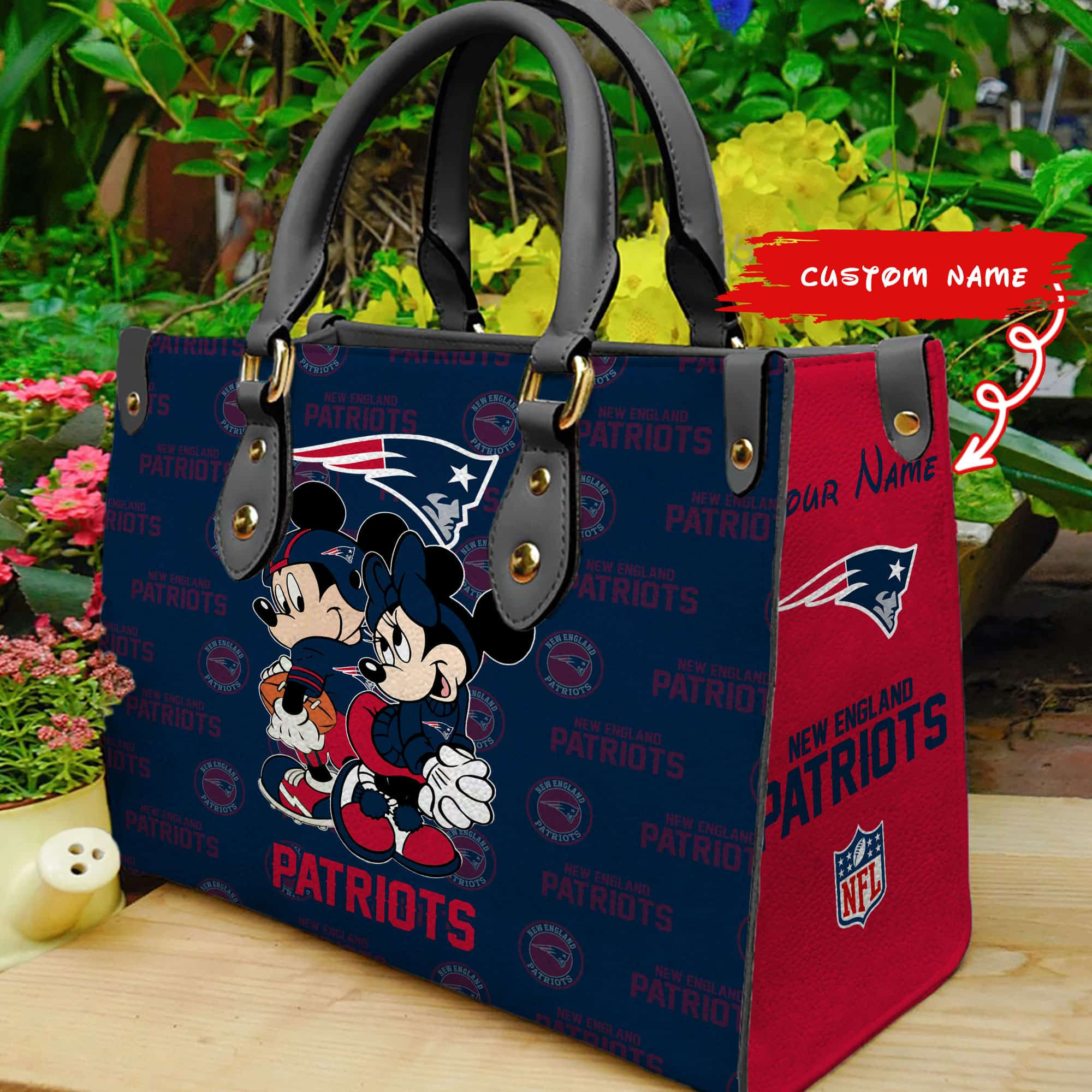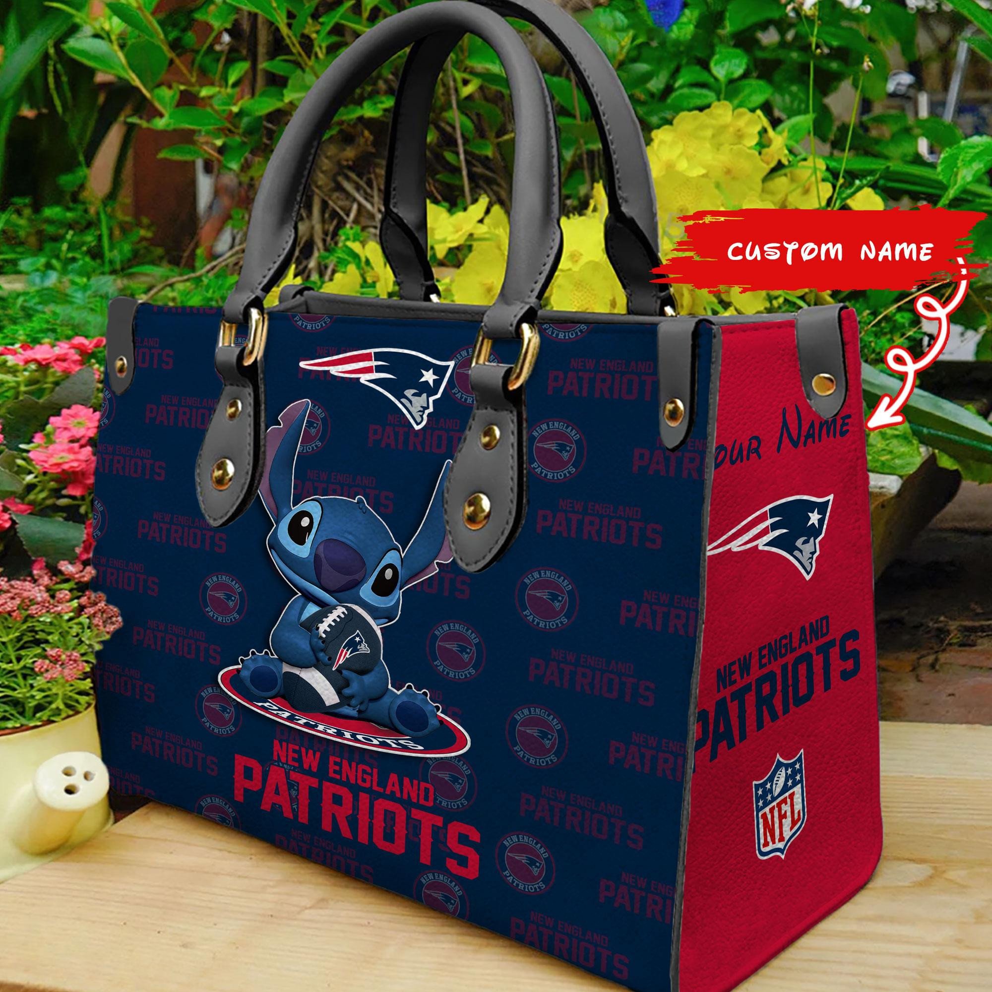 New England Patriots Personalized Leather Hand Bag