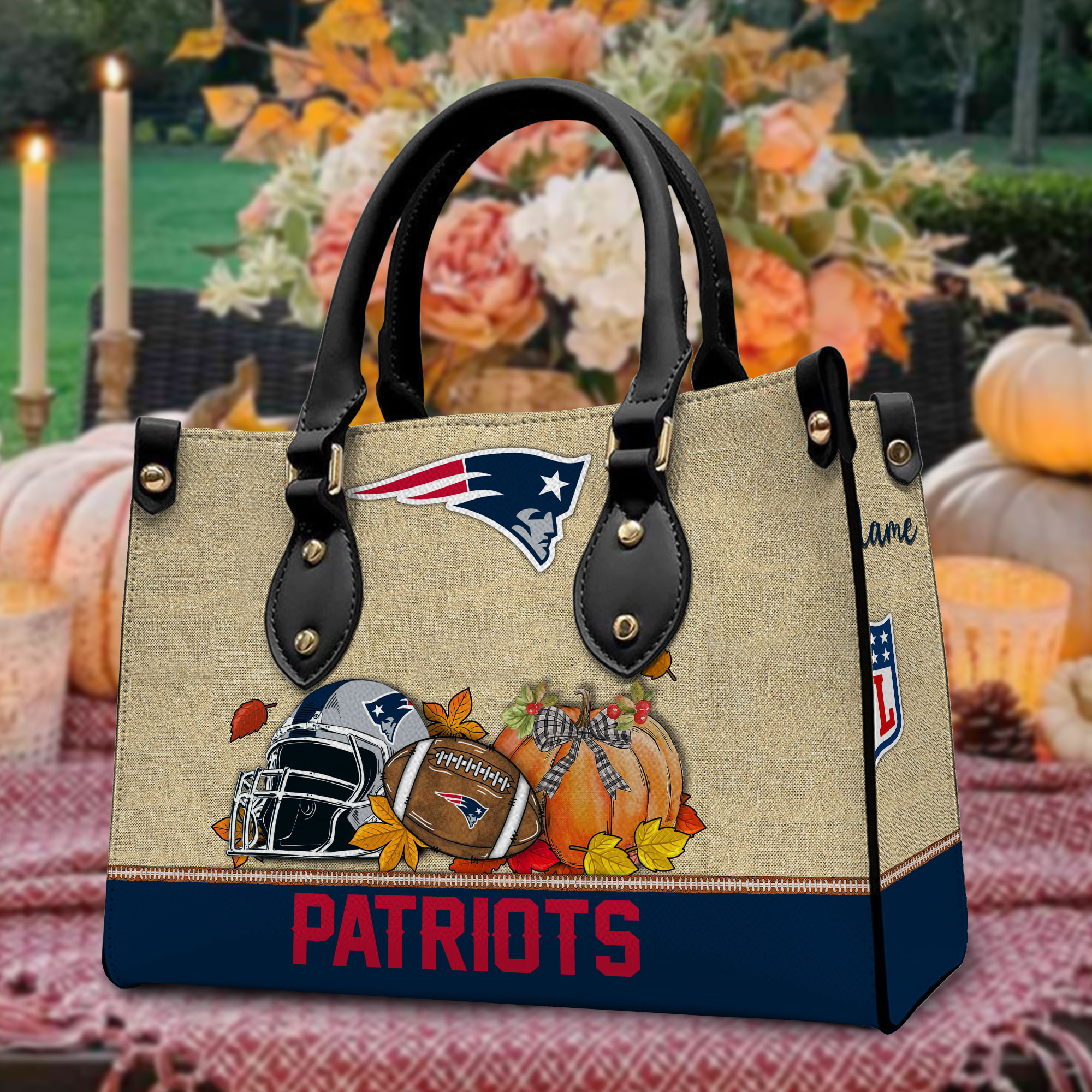 New England Patriots Personalized Leather Hand Bag