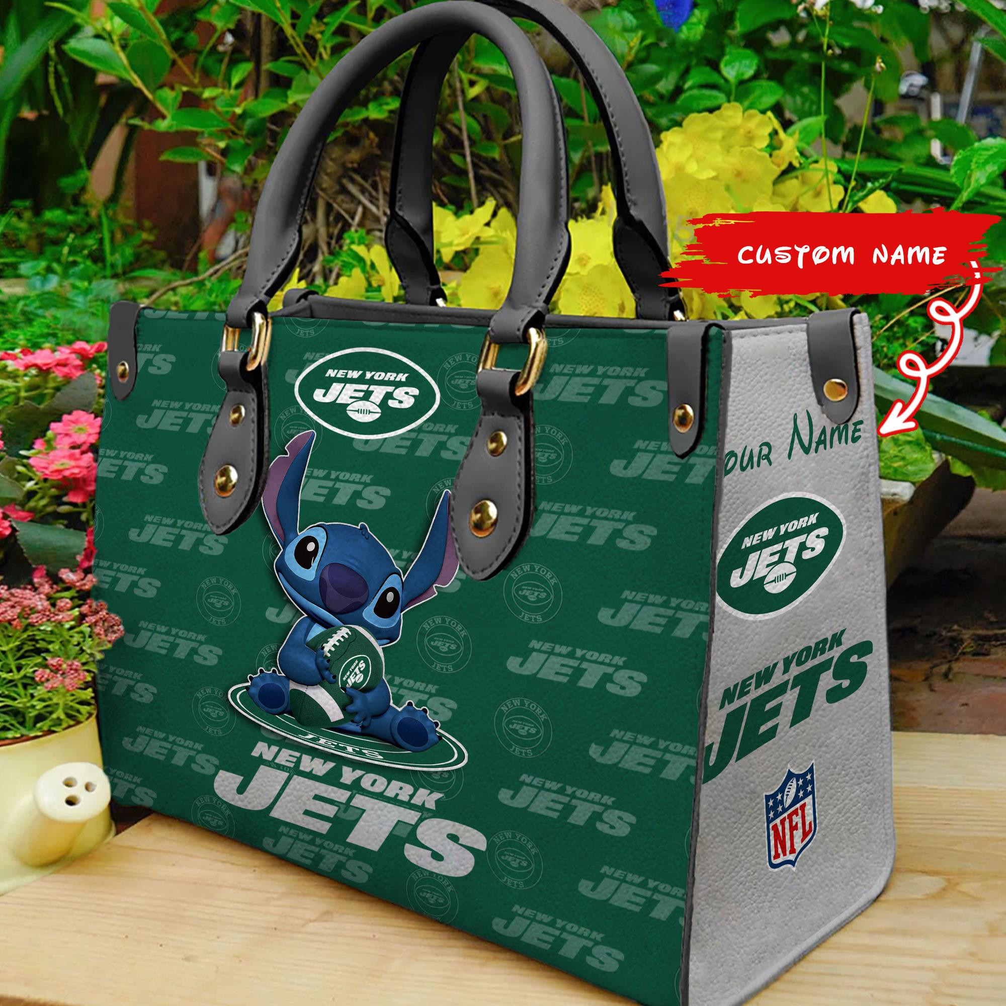 New York Jets Stitch Women Custom Name Leather Hand Bag
