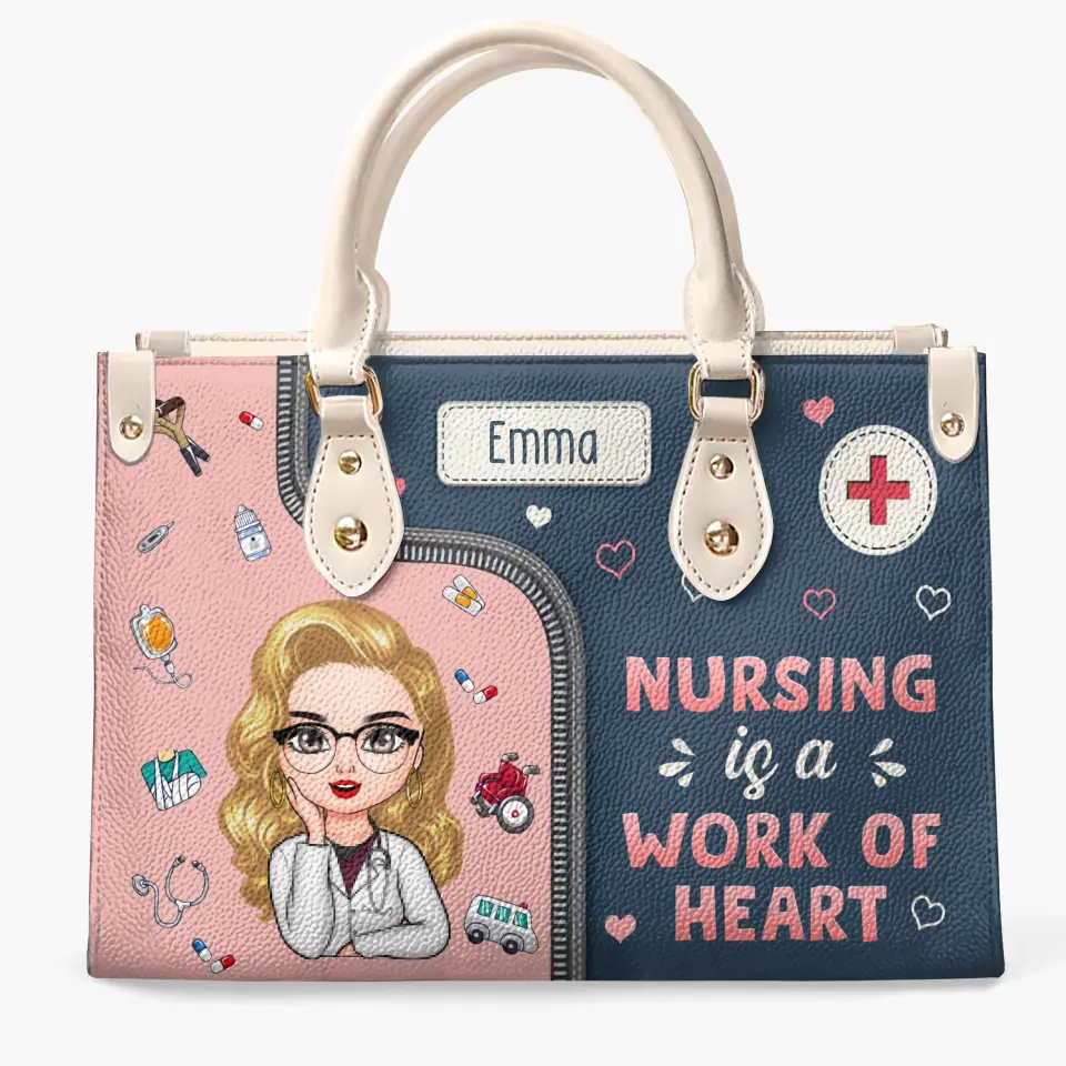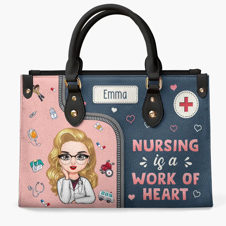 Nursing Is A Work Of Heart Personalized Custom Leather Bag Appreciation Gift For Nurse