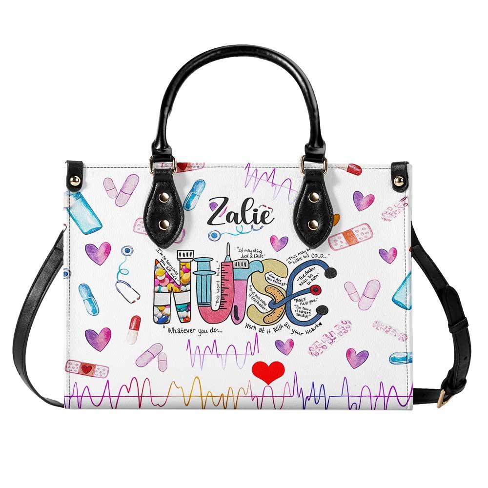 Nursing Is A Work Of Heart Personalized Custom Leather Bag Nurse’s Day Appreciation Gift For Nurse