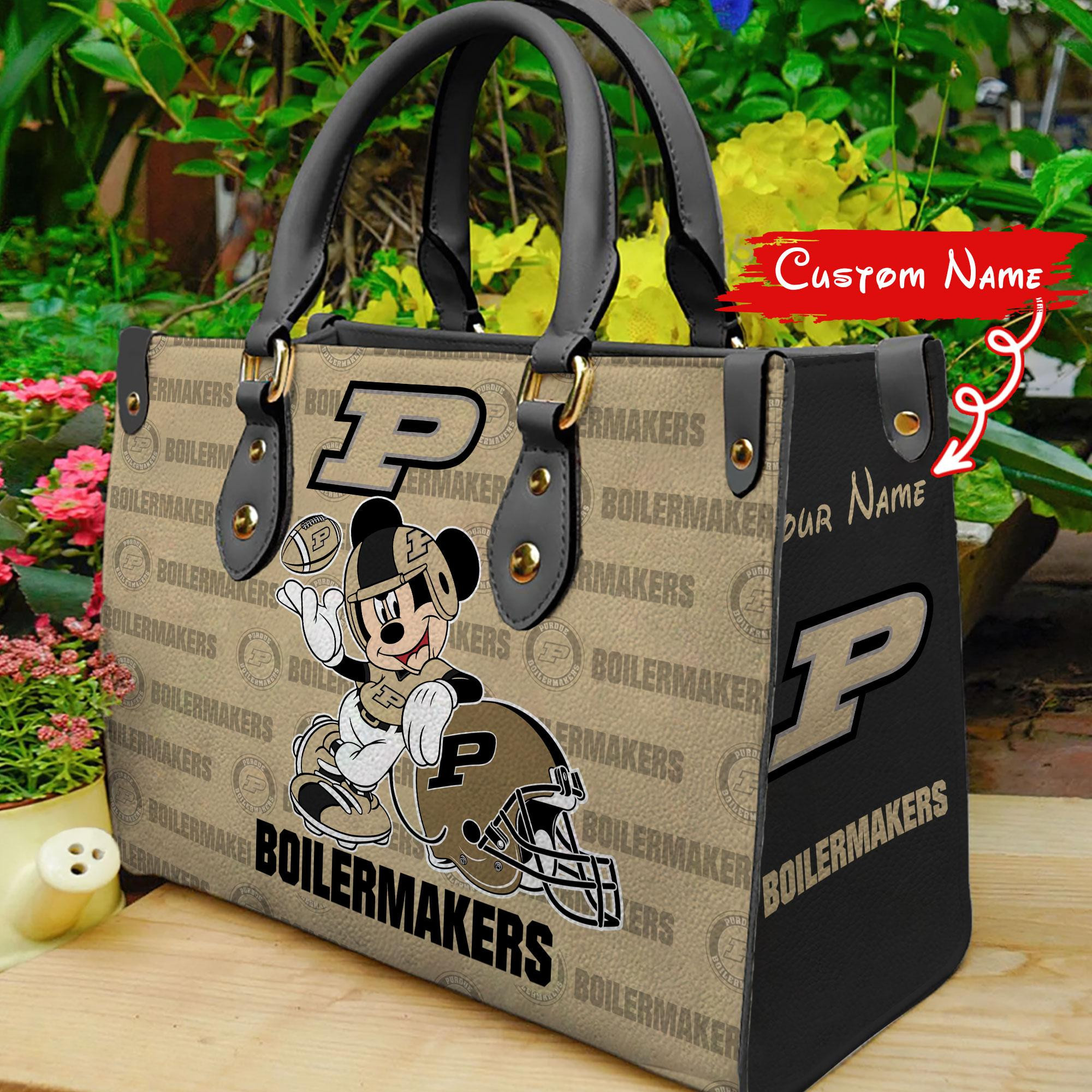 P Purdue Boilermakers Mickey Women Leather Hand Bag