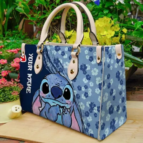 Personalized Stitch Ohana Cartoon Women Vegan Leather Handbag