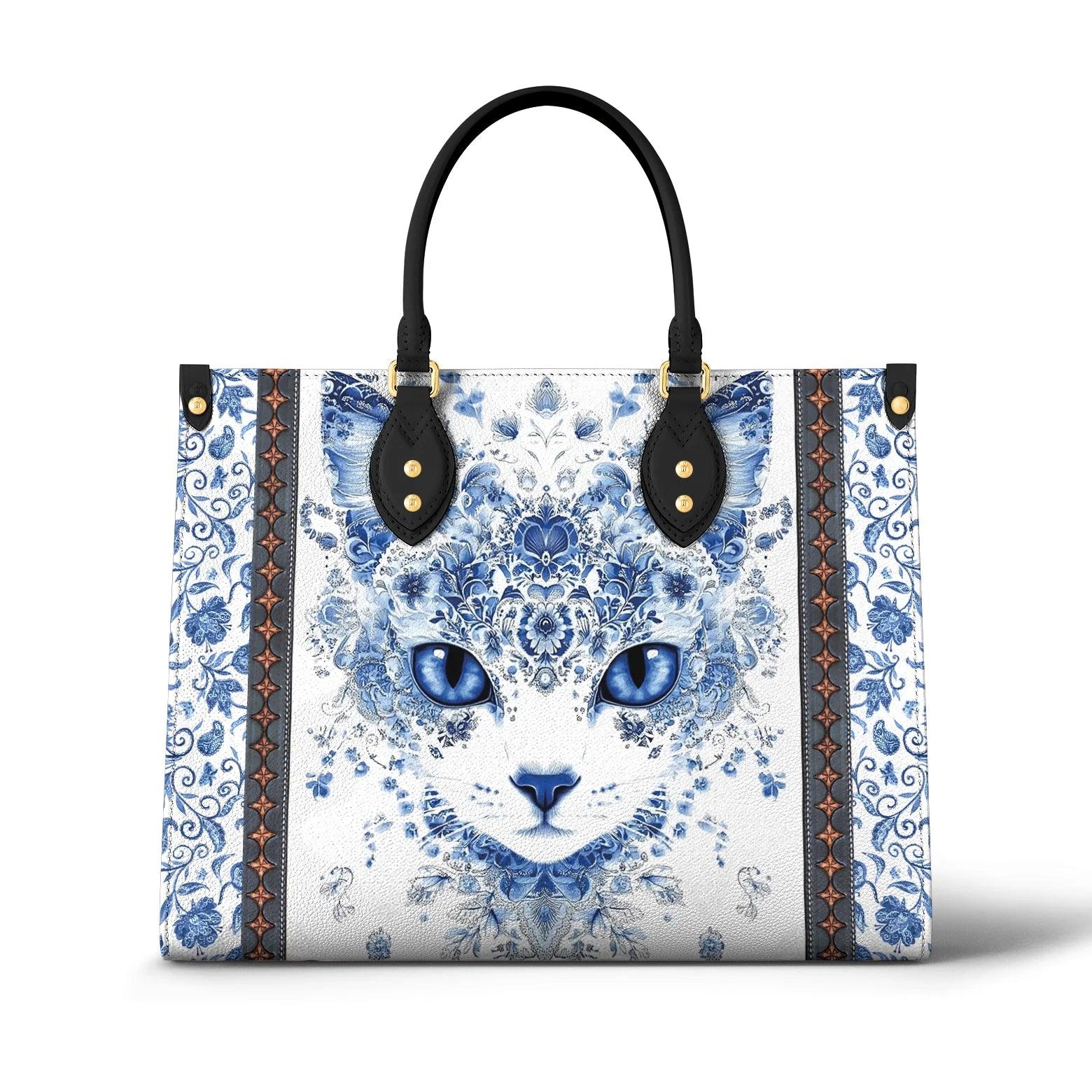 Personalized Vegan Leather Handbag Blue Beauty Cat