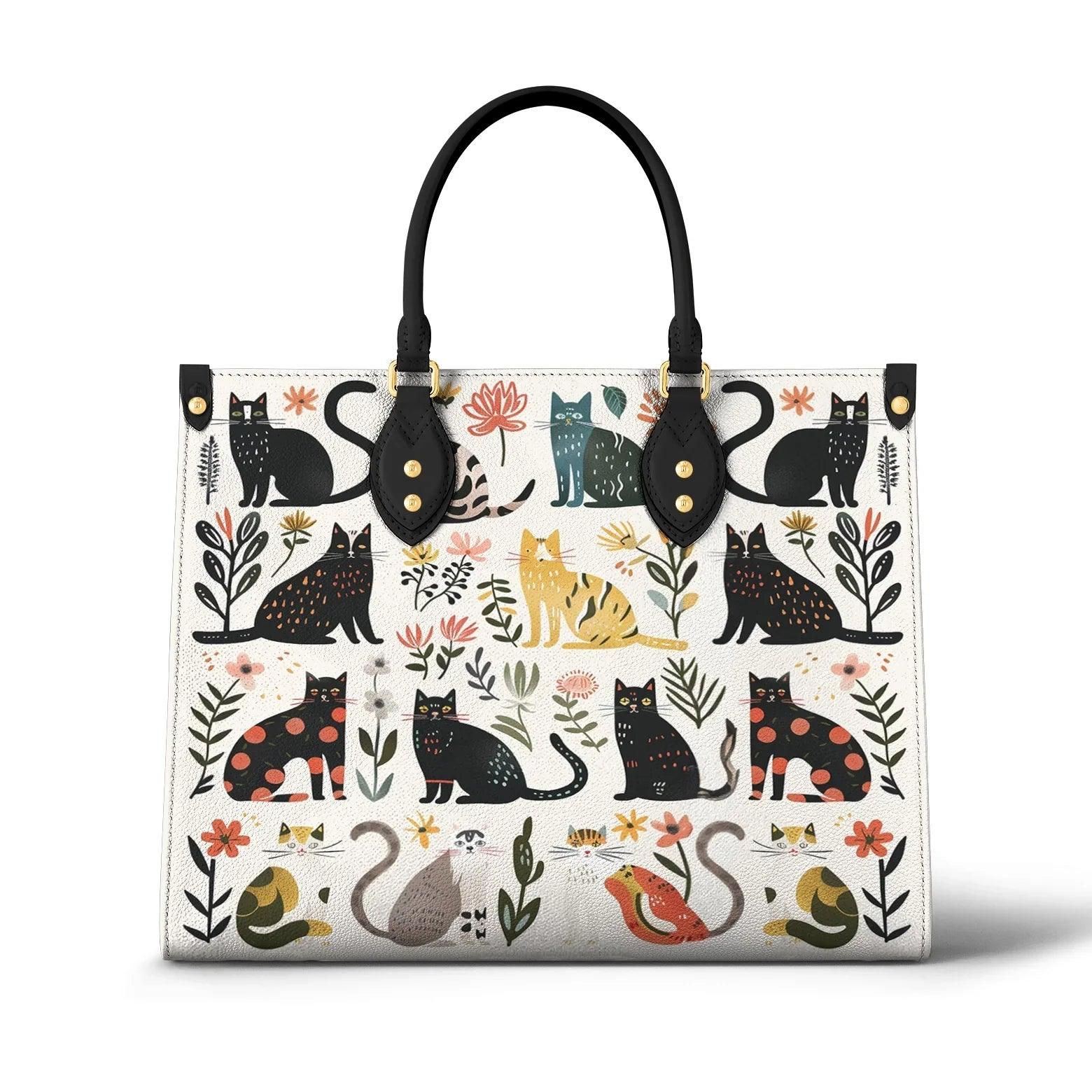 Personalized Vegan Leather Handbag Botanical Cat Bliss