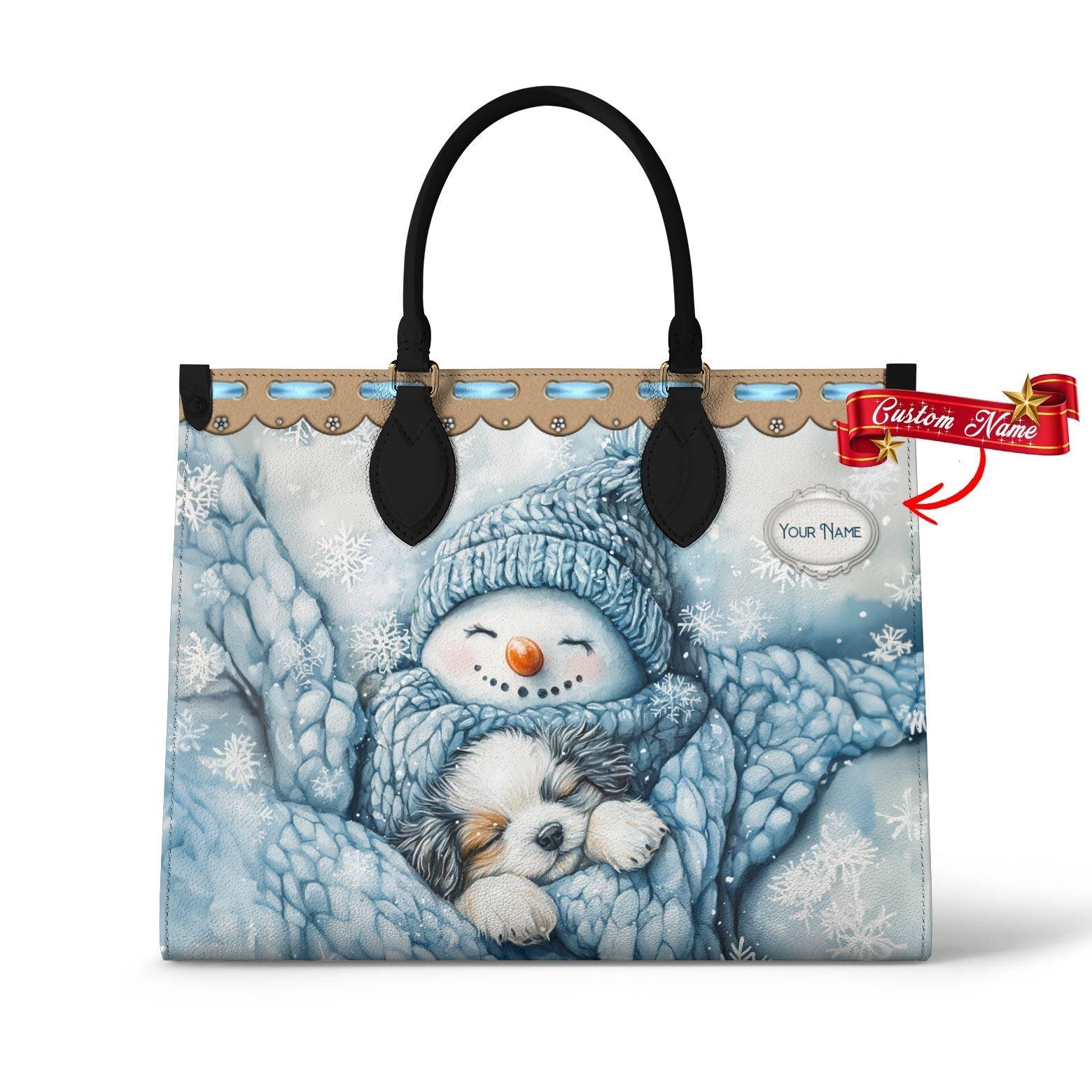 Personalized Vegan Leather Handbag Cozy Snowman
