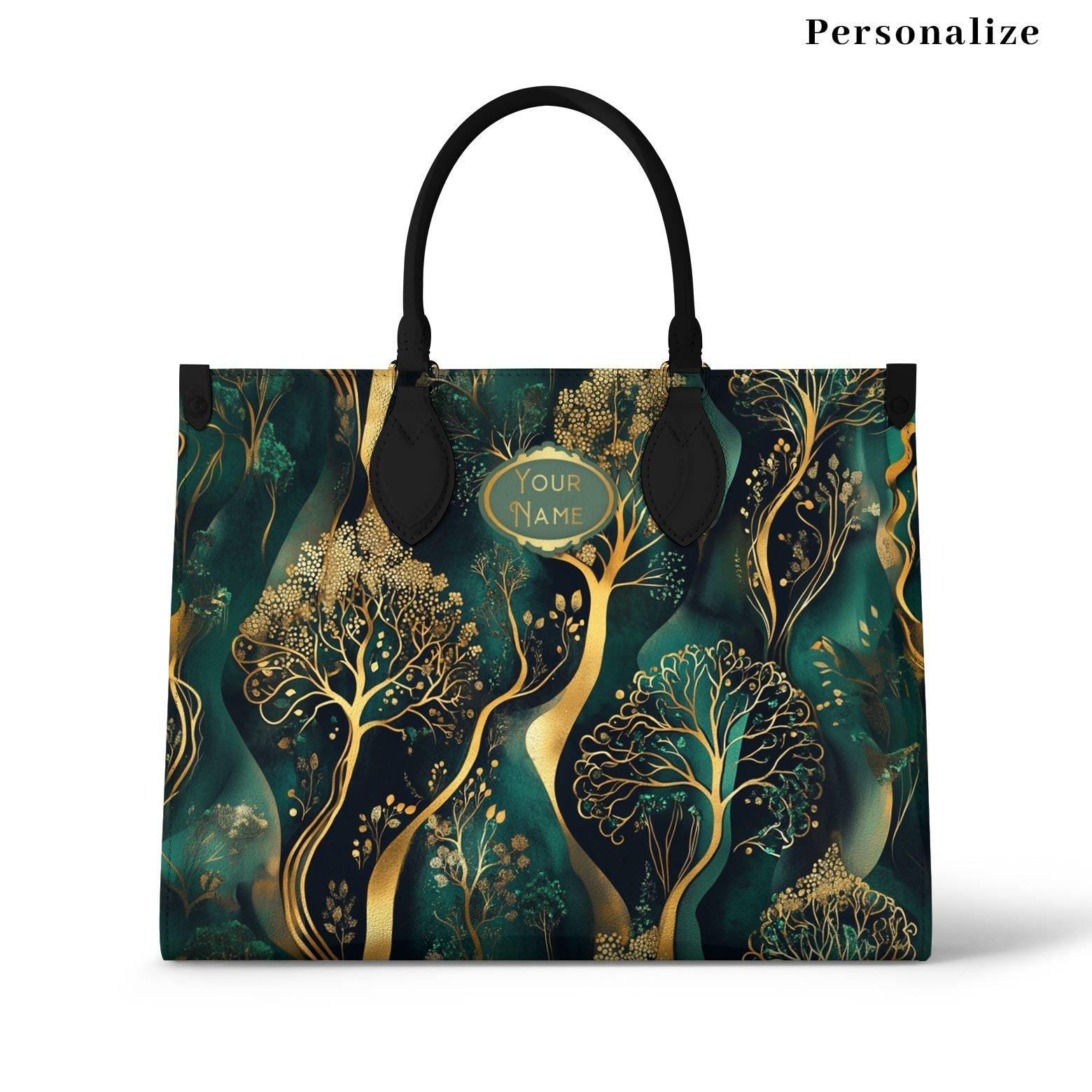 Personalized Vegan Leather Handbag Emerald Dreams