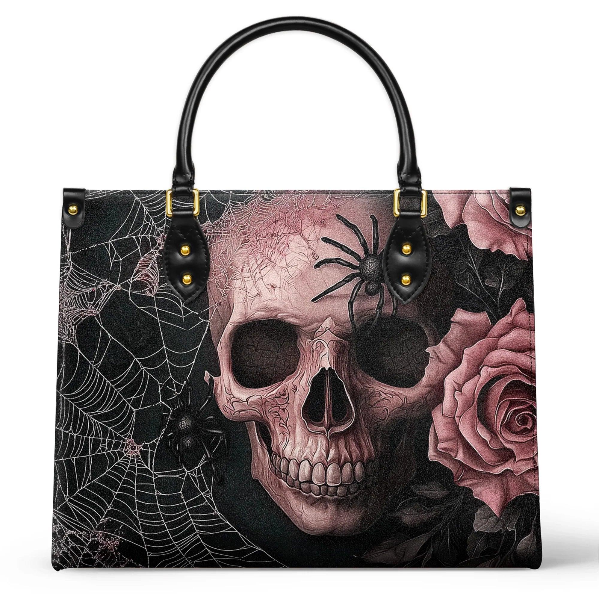 Personalized Vegan Leather Handbag Elegent Skull Roses