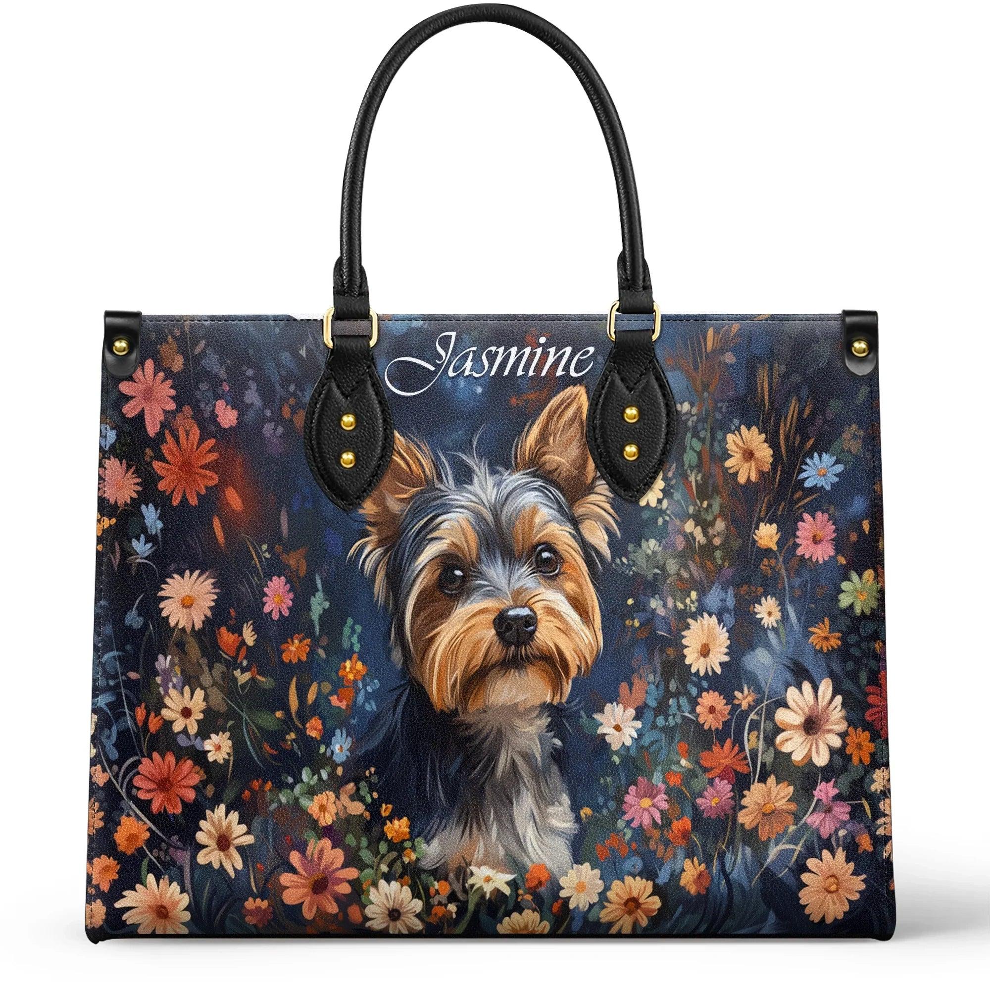 Personalized Vegan Leather Handbag Enchanted Yorkie Bloom