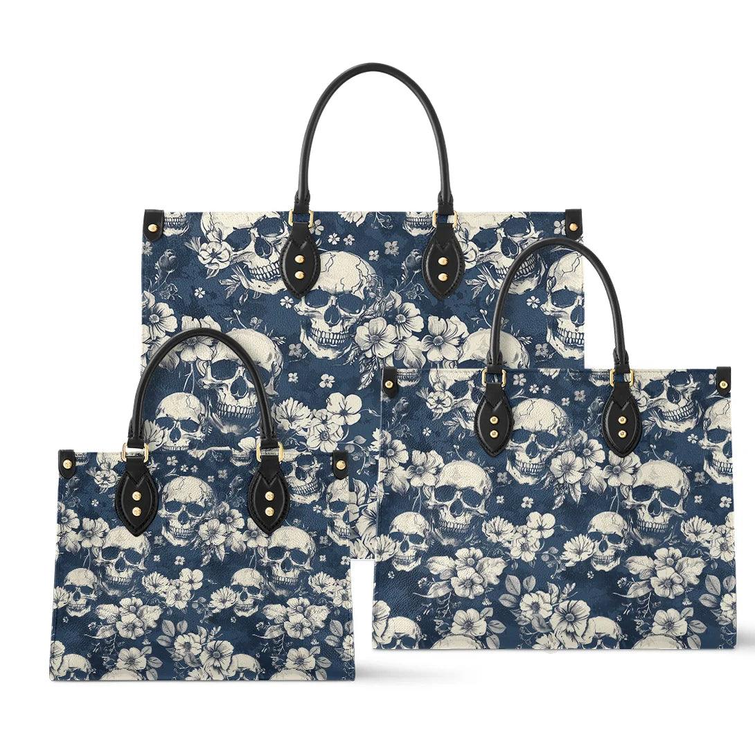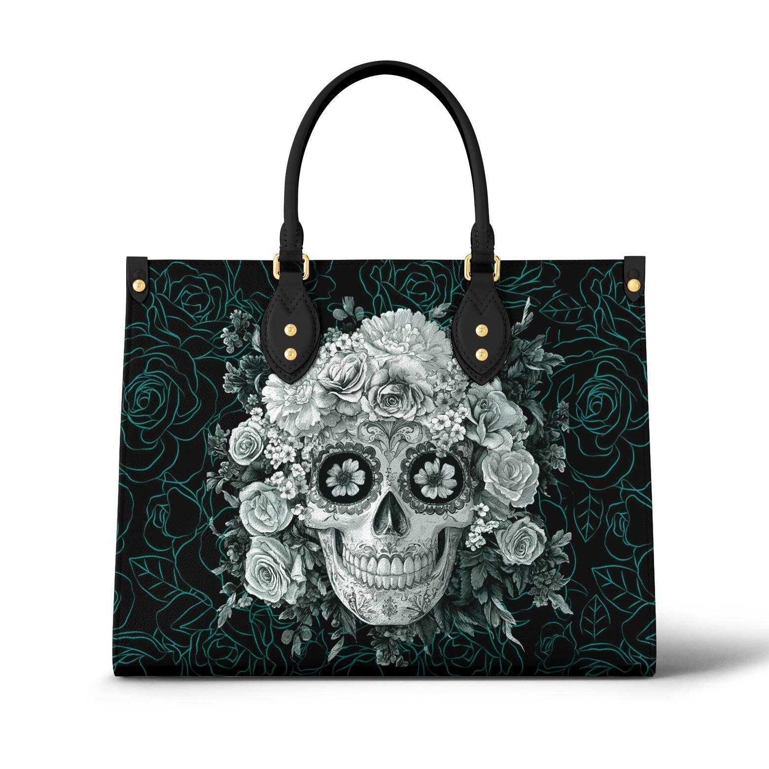 Personalized Vegan Leather Handbag Gothic Elegance Skull Floral