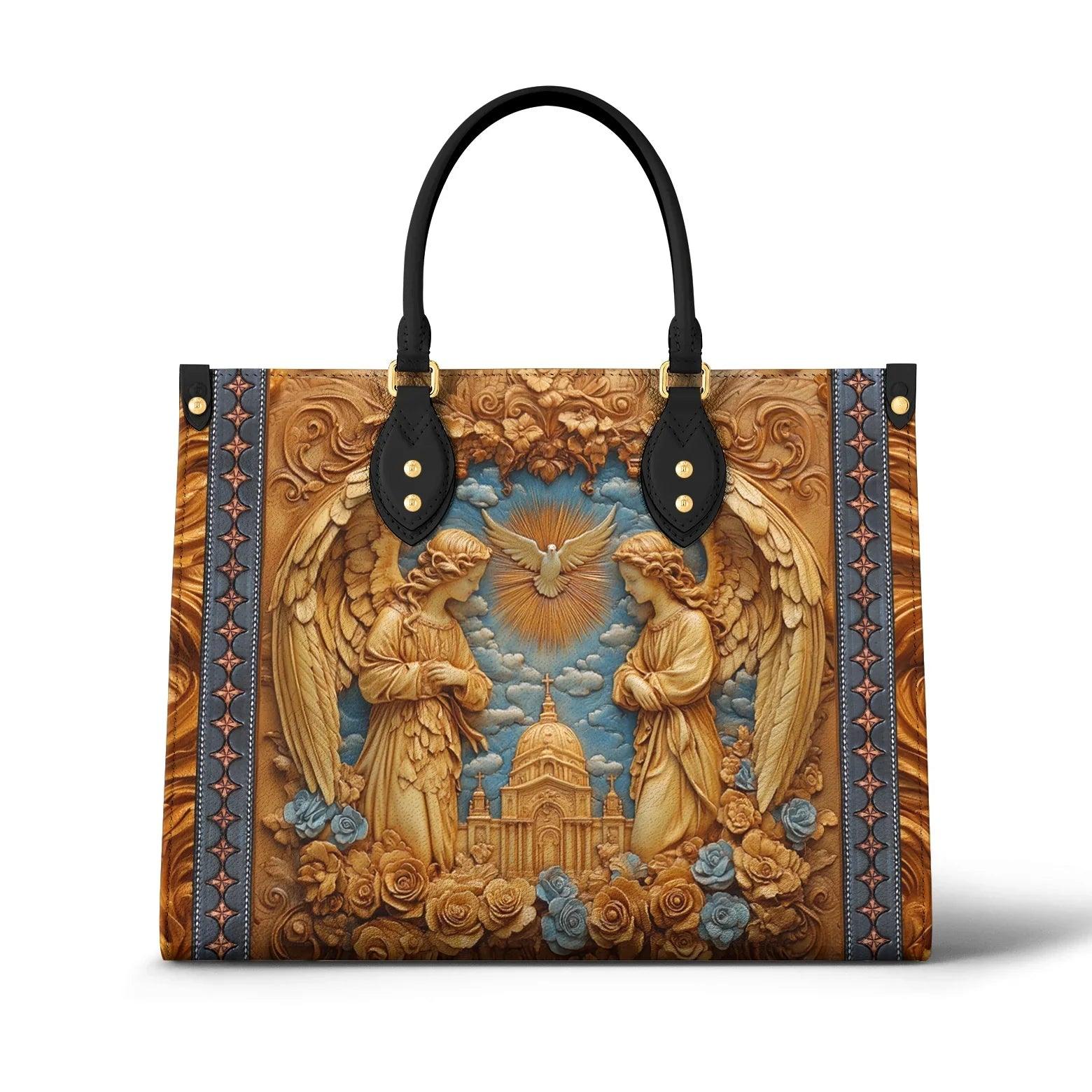 Personalized Vegan Leather Handbag Graceful Serenity Virgin Mary