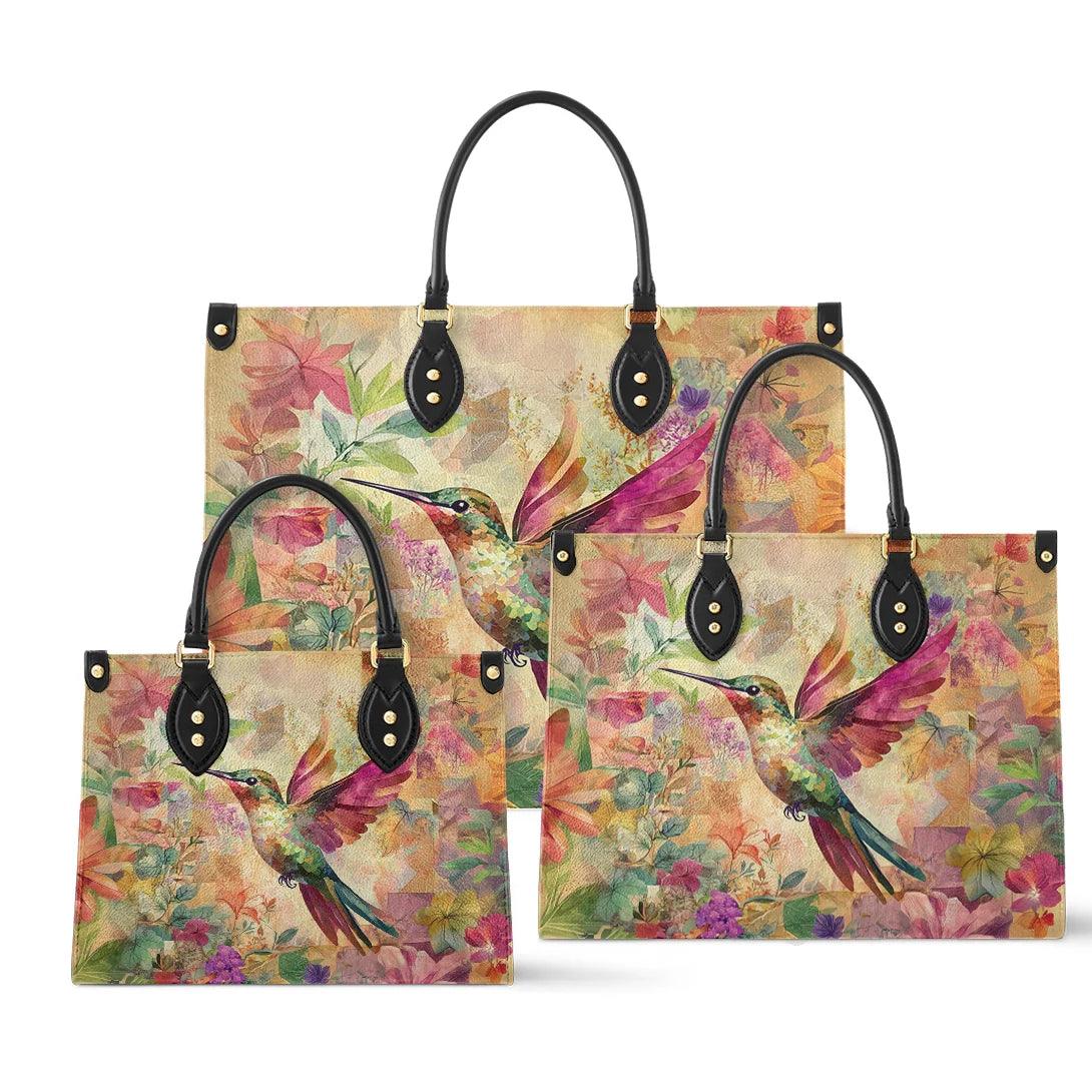 Personalized Vegan Leather Handbag Hummingbird Blossom Flight