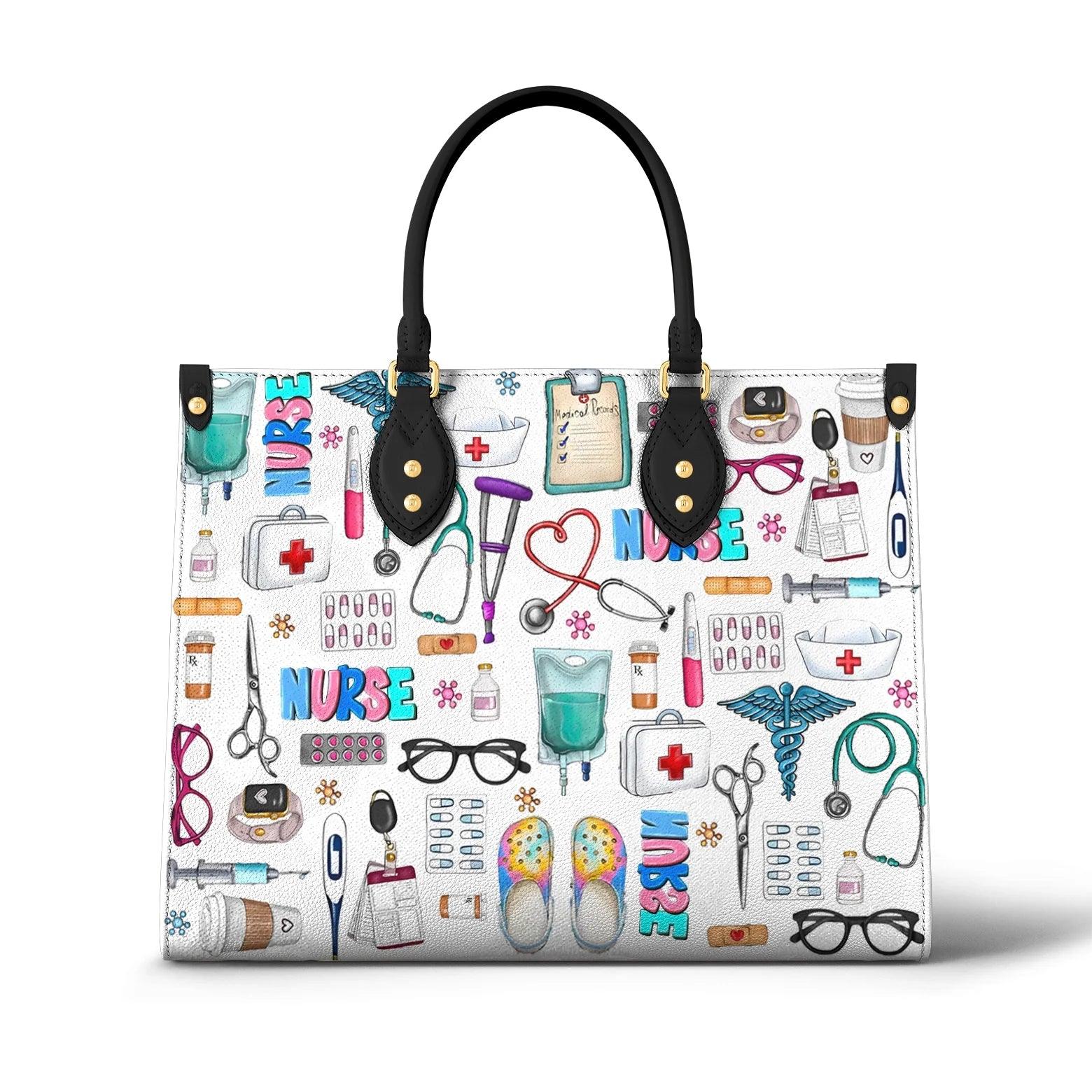 Personalized Vegan Leather Handbag Nurse Colorful