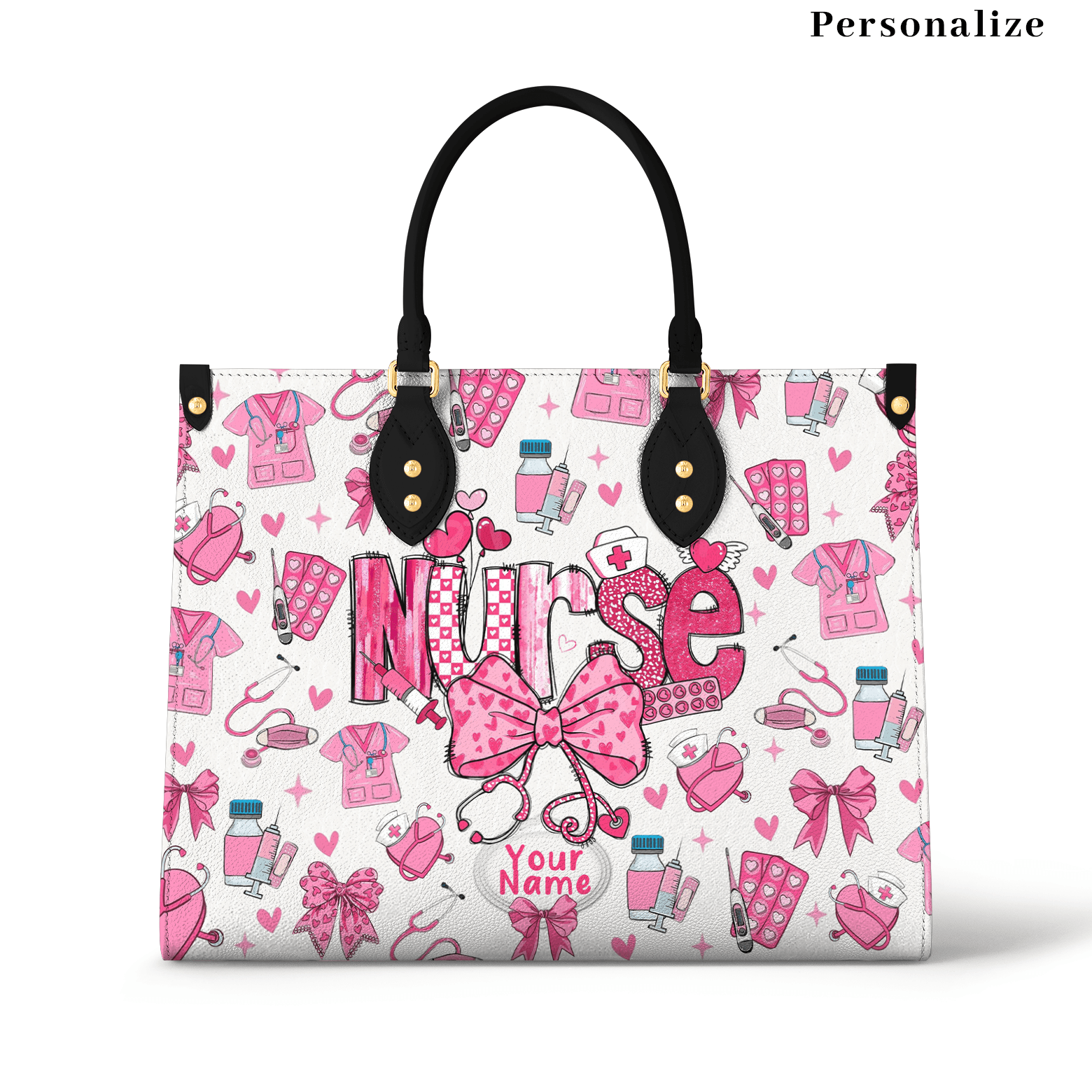 Personalized Vegan Leather Handbag Nurse Valentine