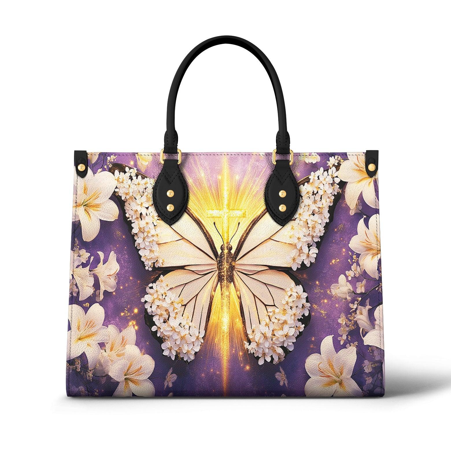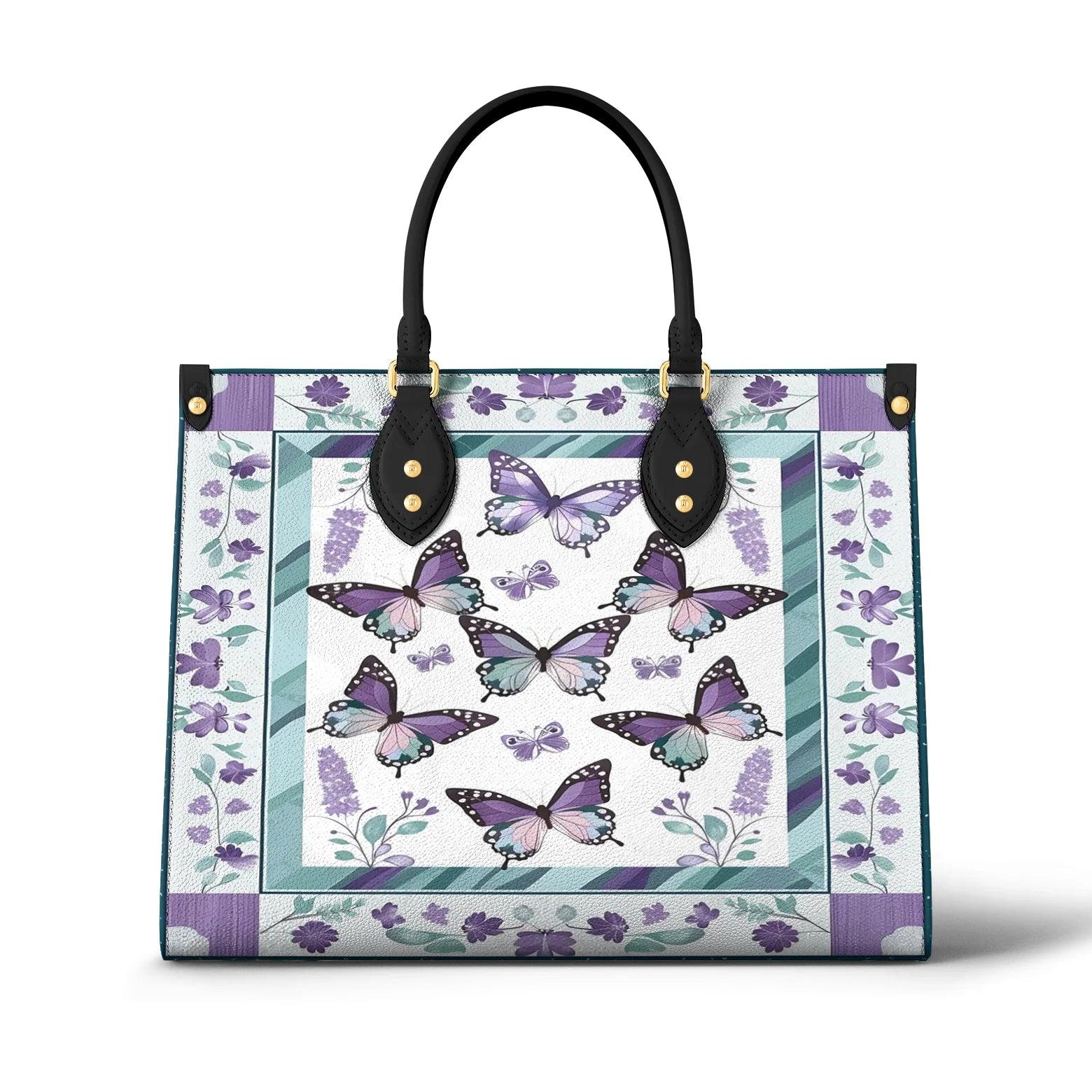 Personalized Vegan Leather Handbag Purple Butterfly Floral