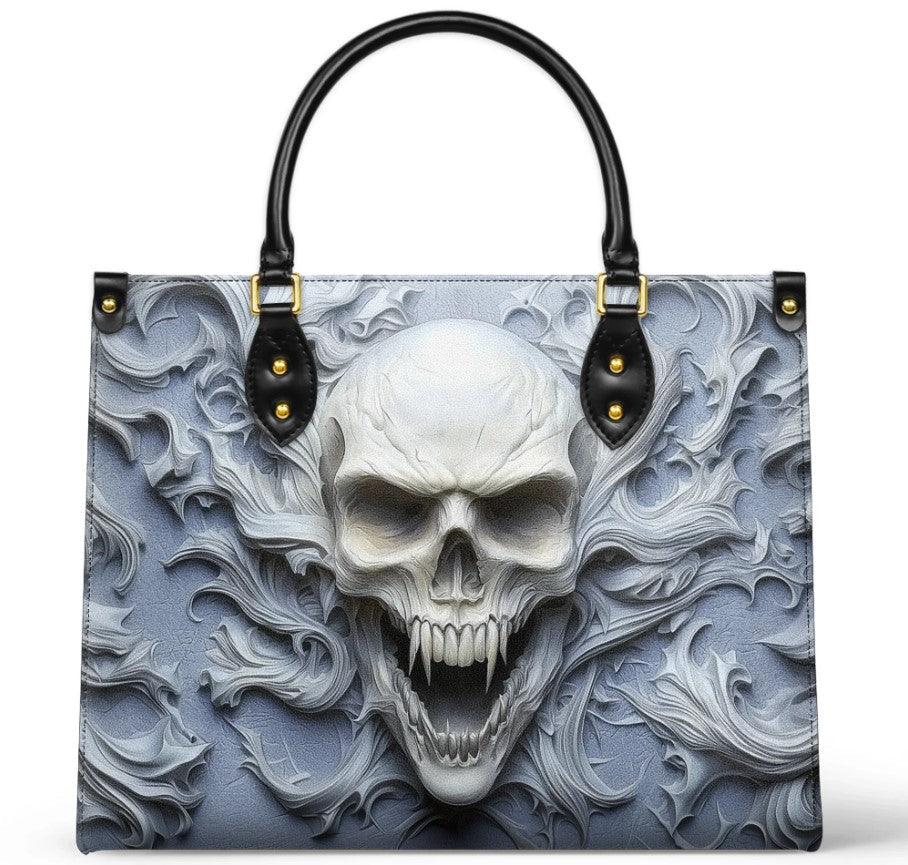 Personalized Vegan Leather Handbag Skull Wraith Frost