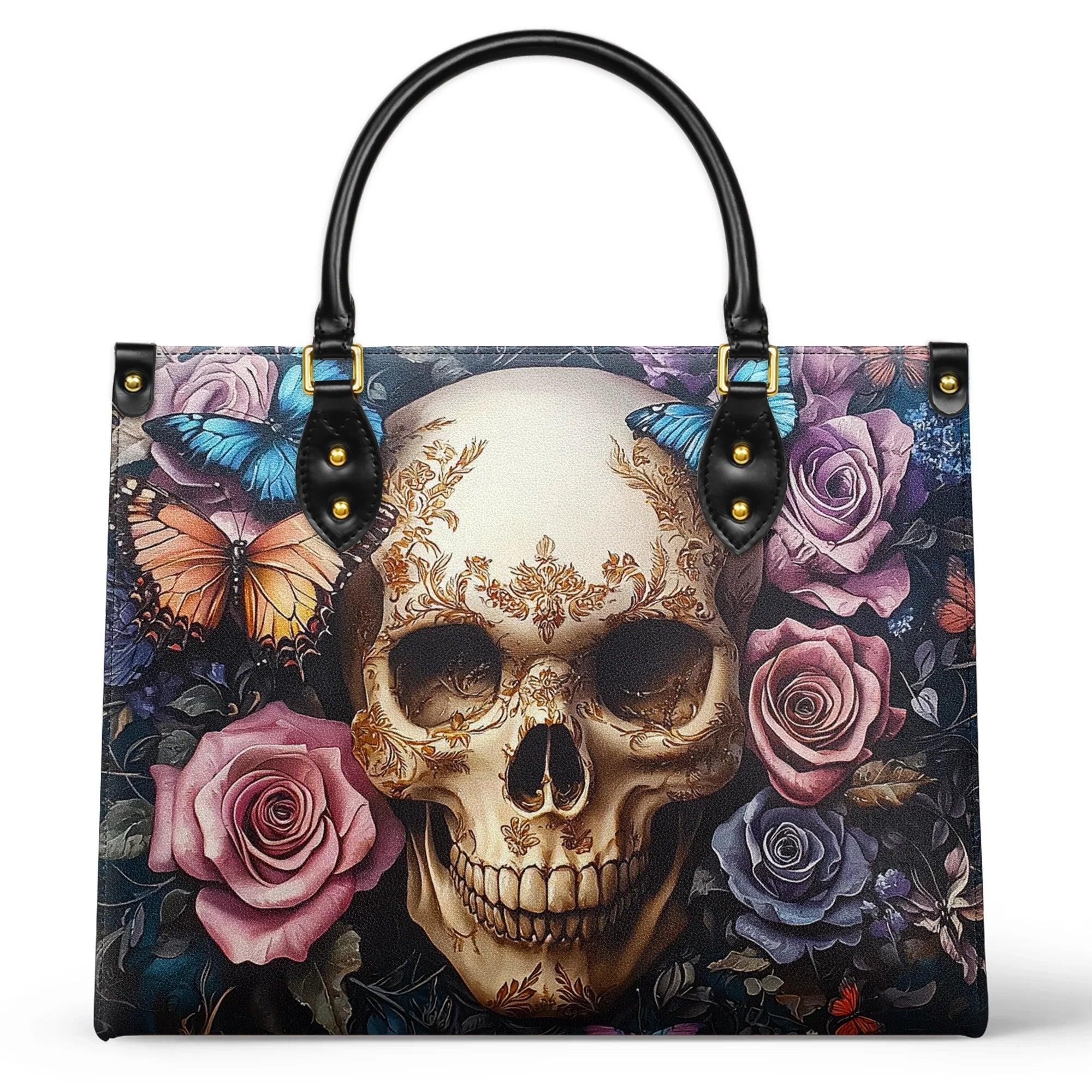 Personalized Vegan Leather Handbag Skull Rose Mystique