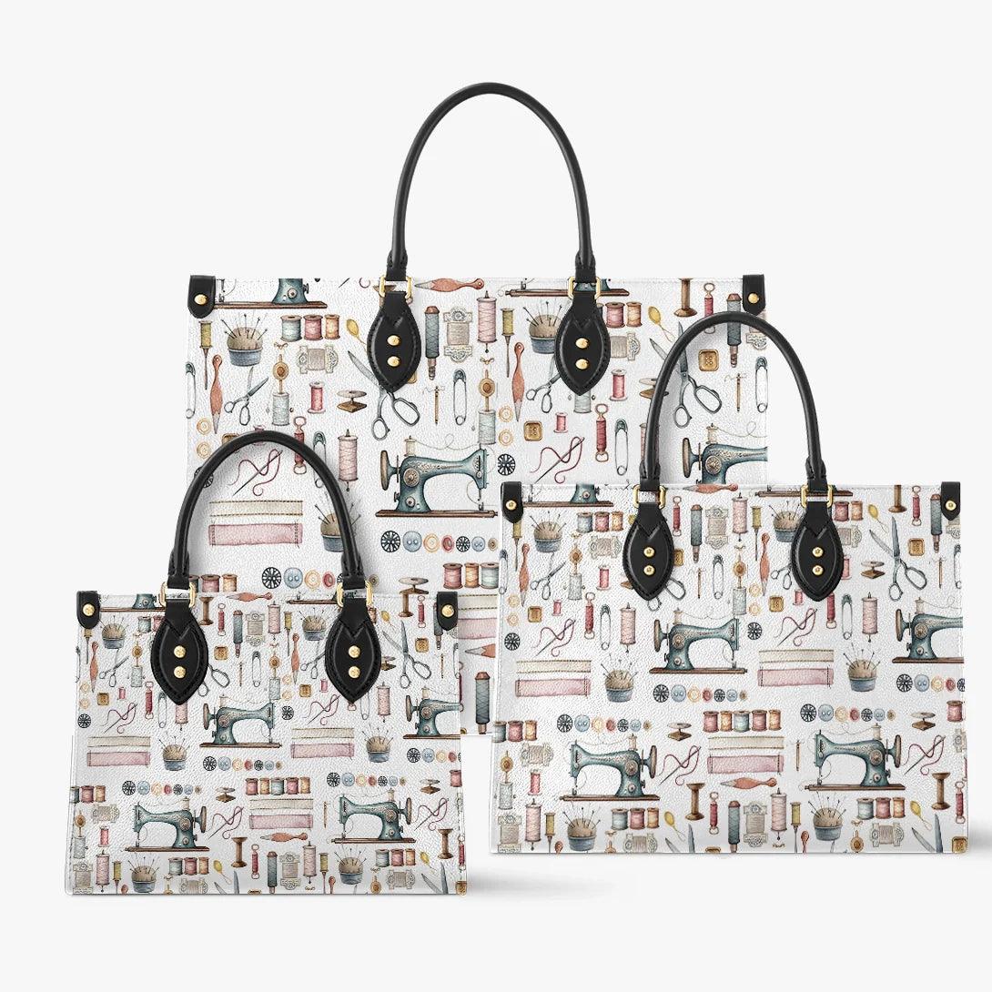 Personalized Vegan Leather Handbag Vintage Sewing Tools