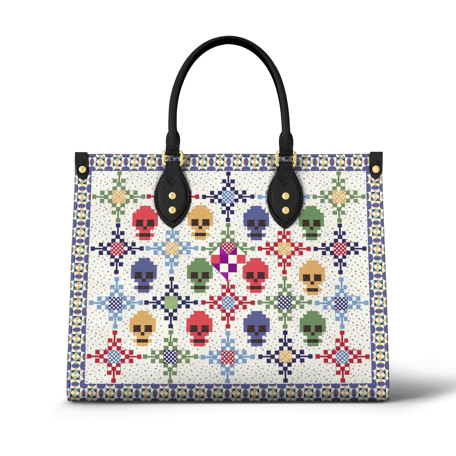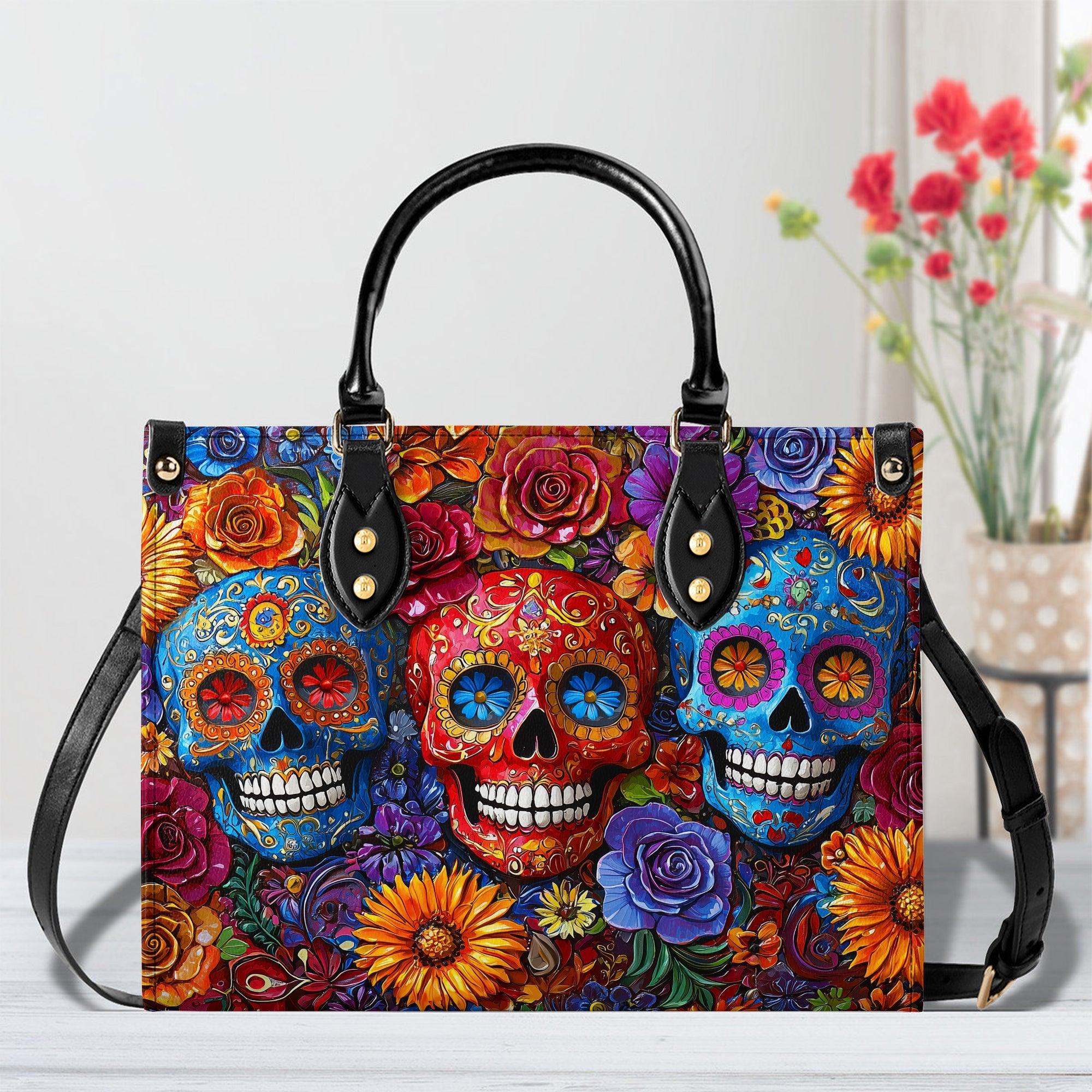 Personalized Vegan Leather Handbag Vibrant Skulls Artisan