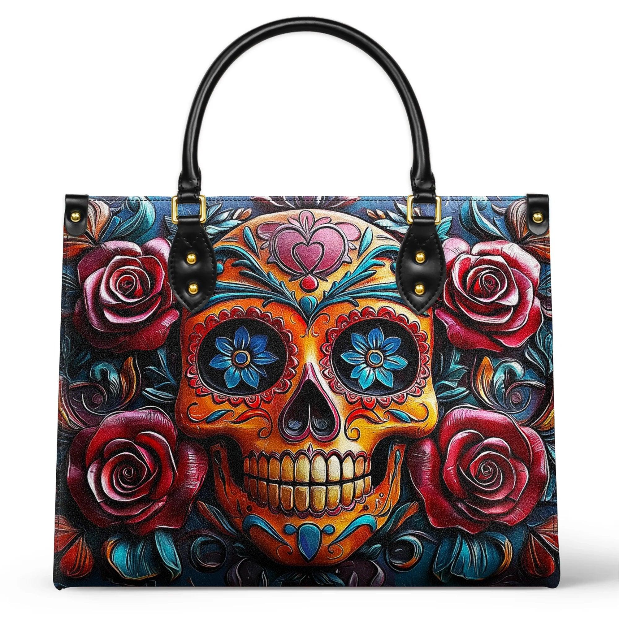 Personalized Vegan Leather Handbag Vibrant Sugar Skull Elegance