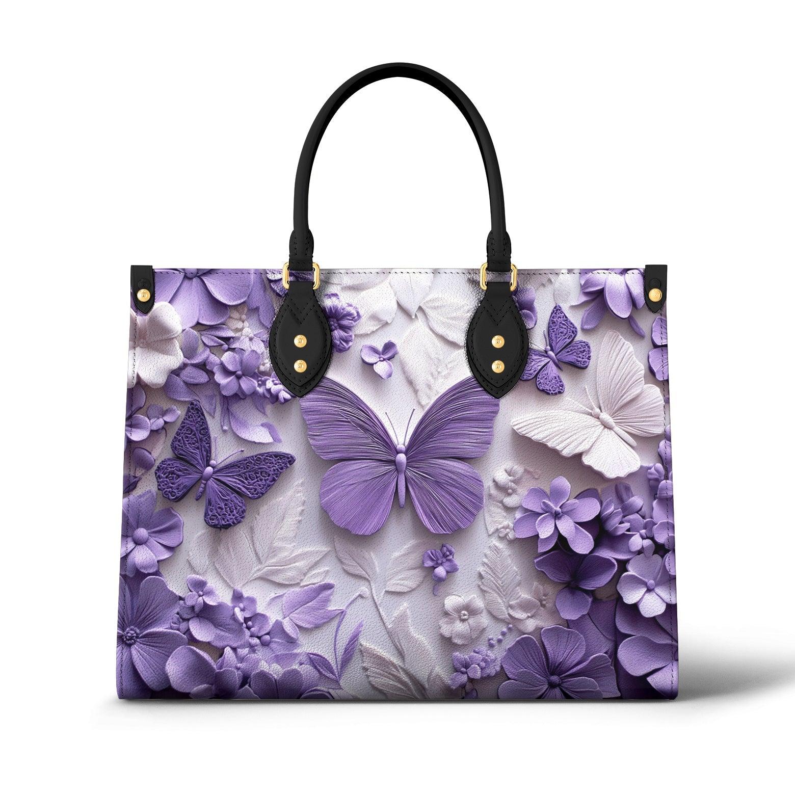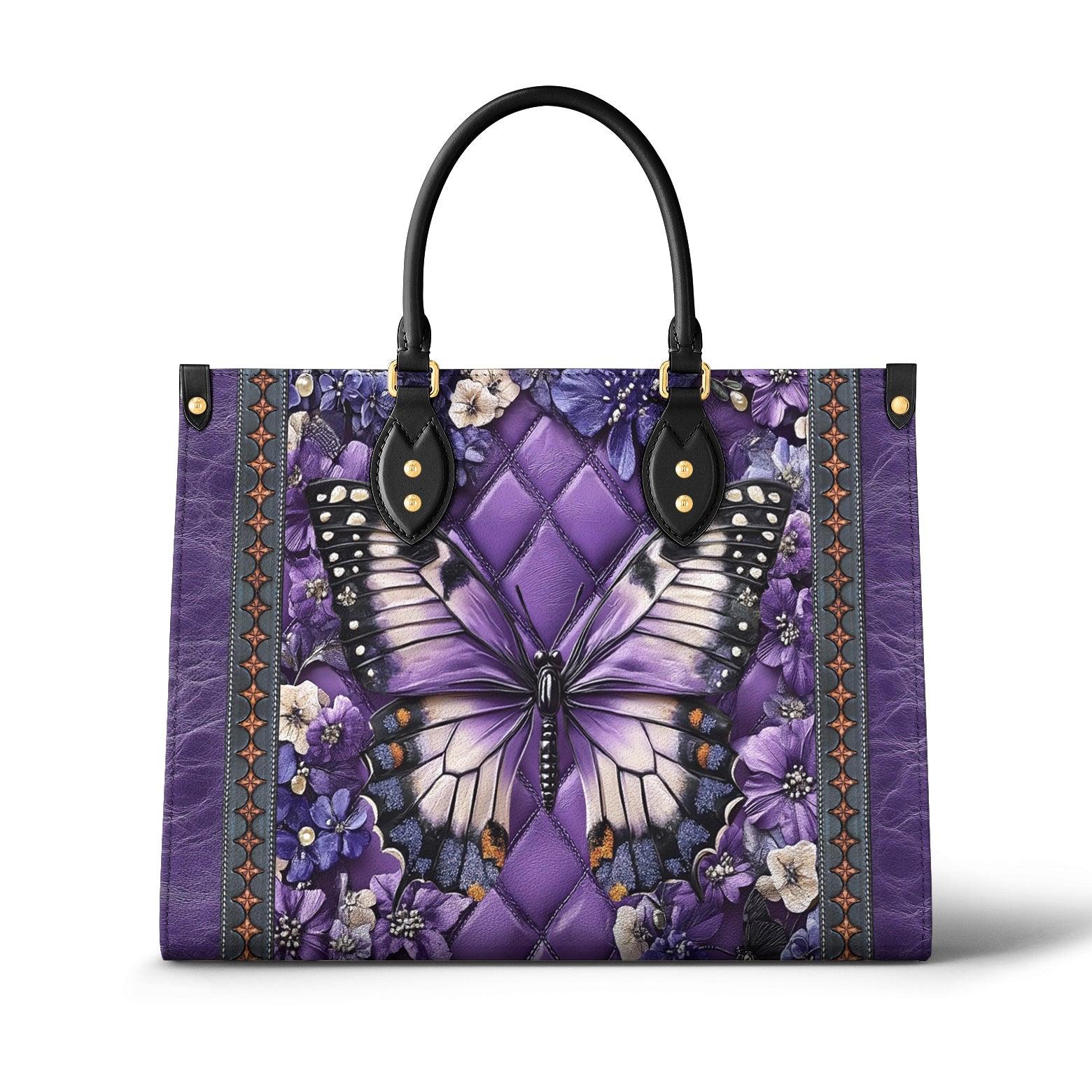 Personalized Vegan Leather Handbag Violet Flutterby Dreams