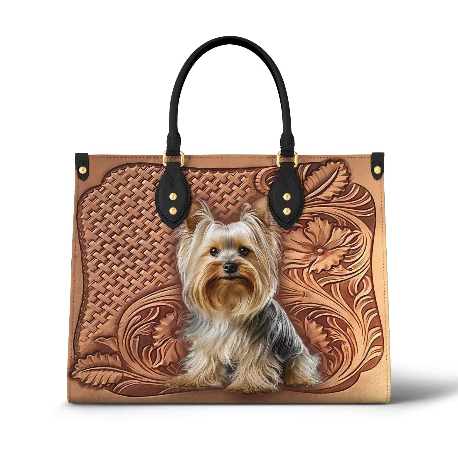Personalized Vegan Leather Handbag Yorkie Regal Delight