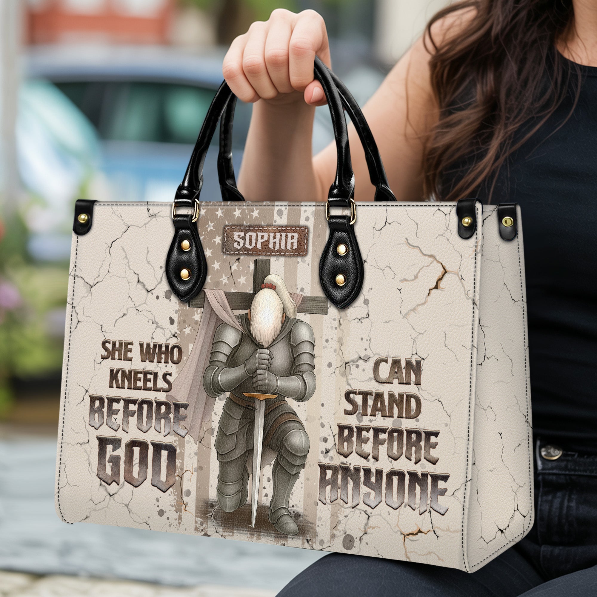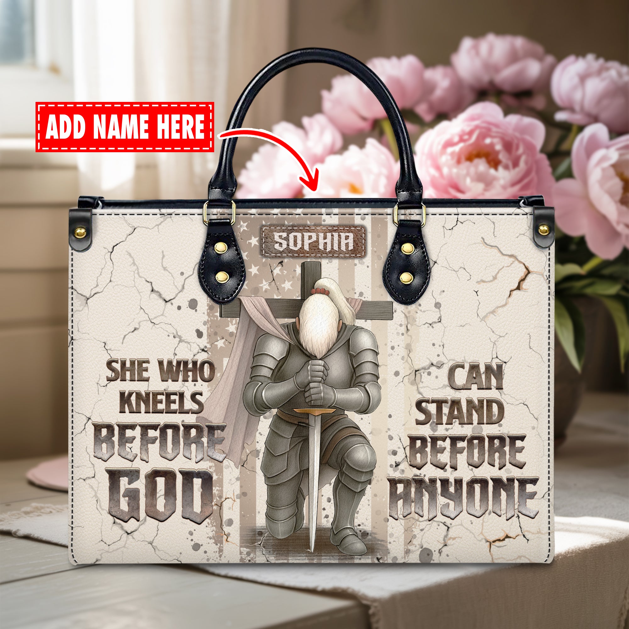 She Who Kneels Before God Can Stand Before Anyone Personalized Leather Handbag