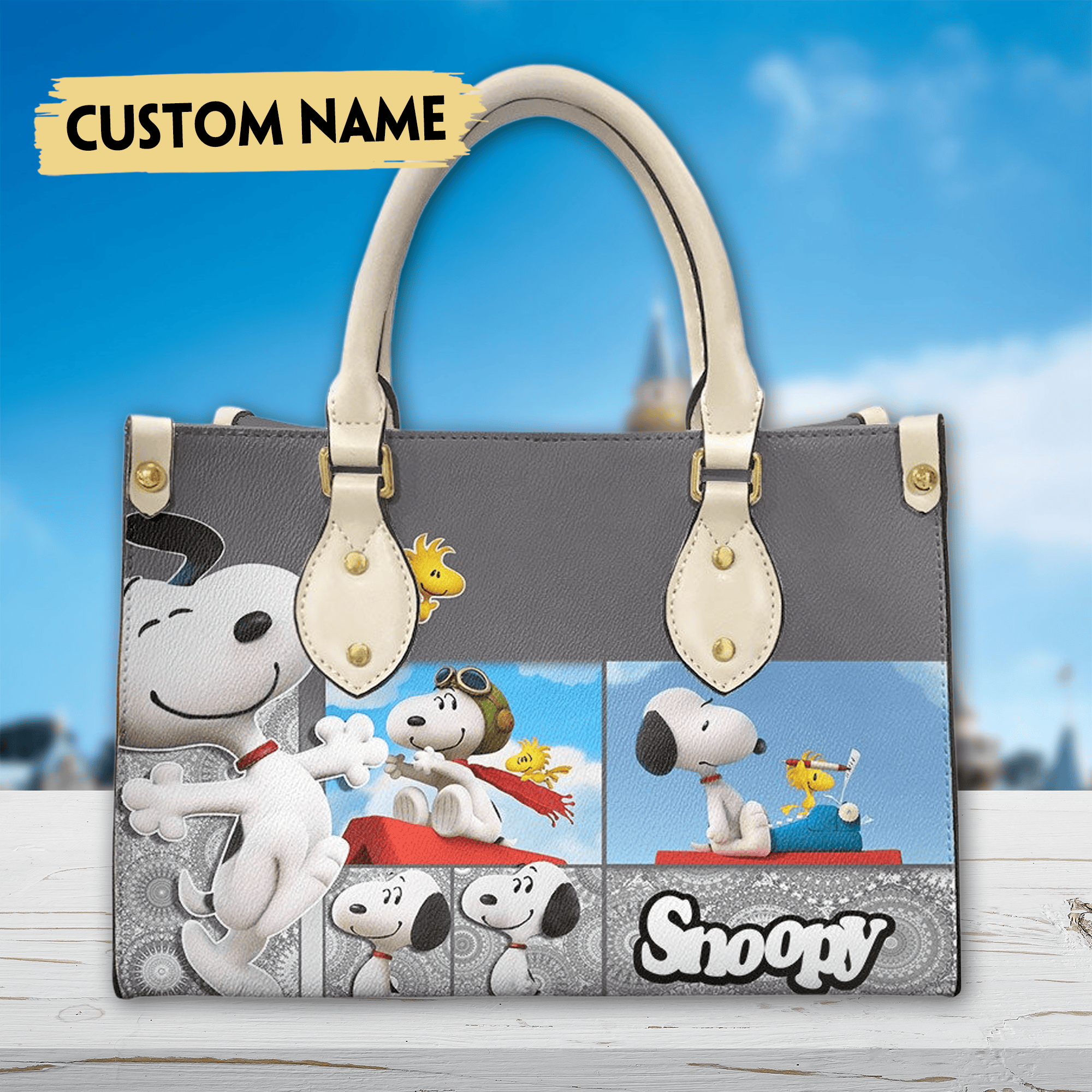 Snoopy Cute Custom Name Women Leather Handbags, Crossbody Shoulder Bag Lady Simple Style