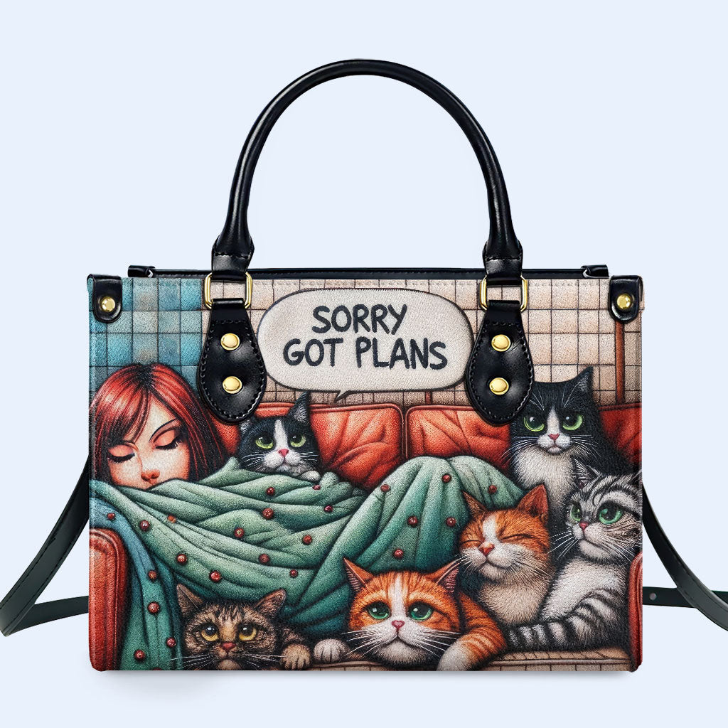 Sorry Got Plans Leather Hand Bag For Cat Lovers