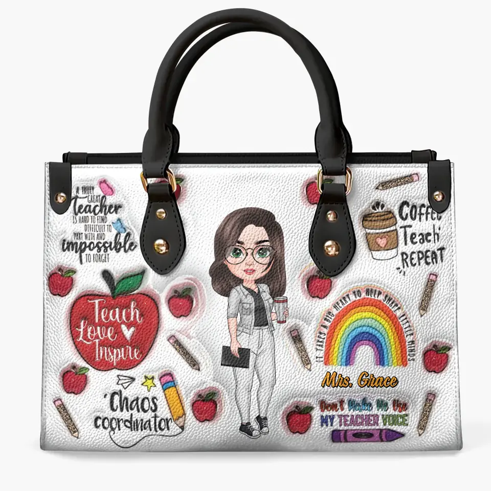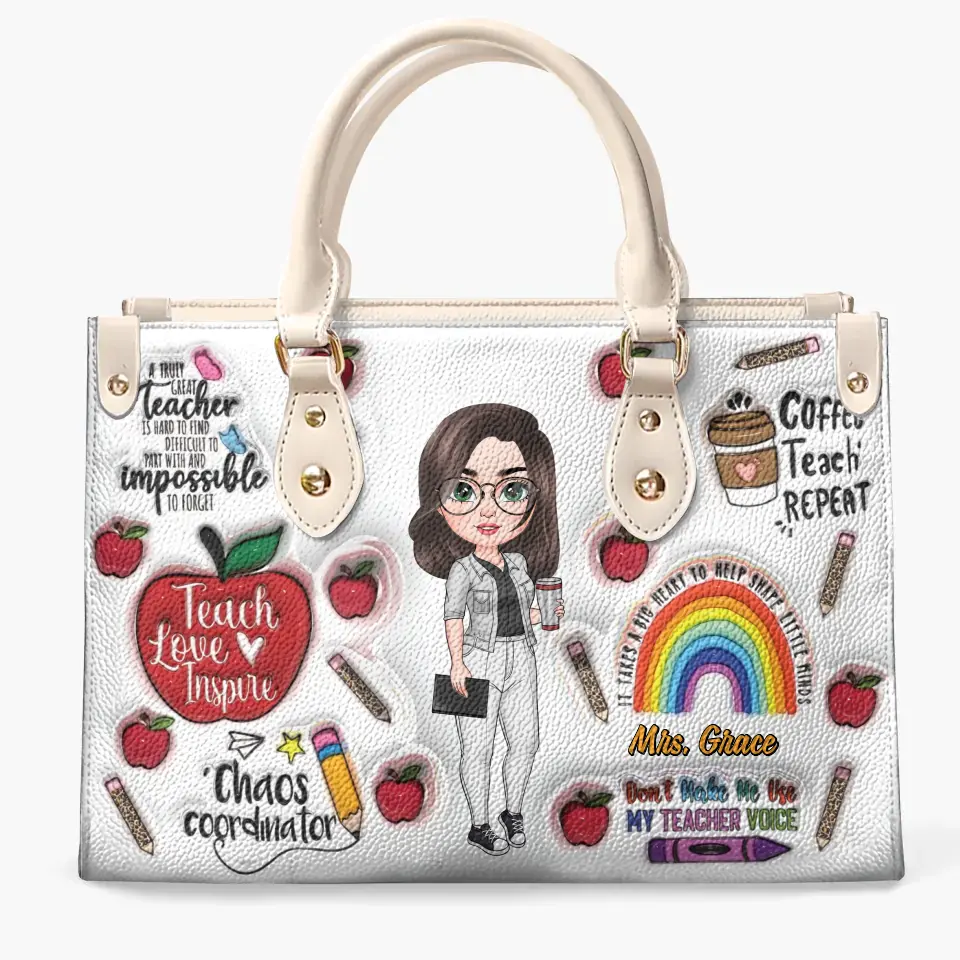 Teach Love Inspire Teacher New Version Personalized Custom Leather Bag Teacher’s Day Appreciation Gift For Teacher
