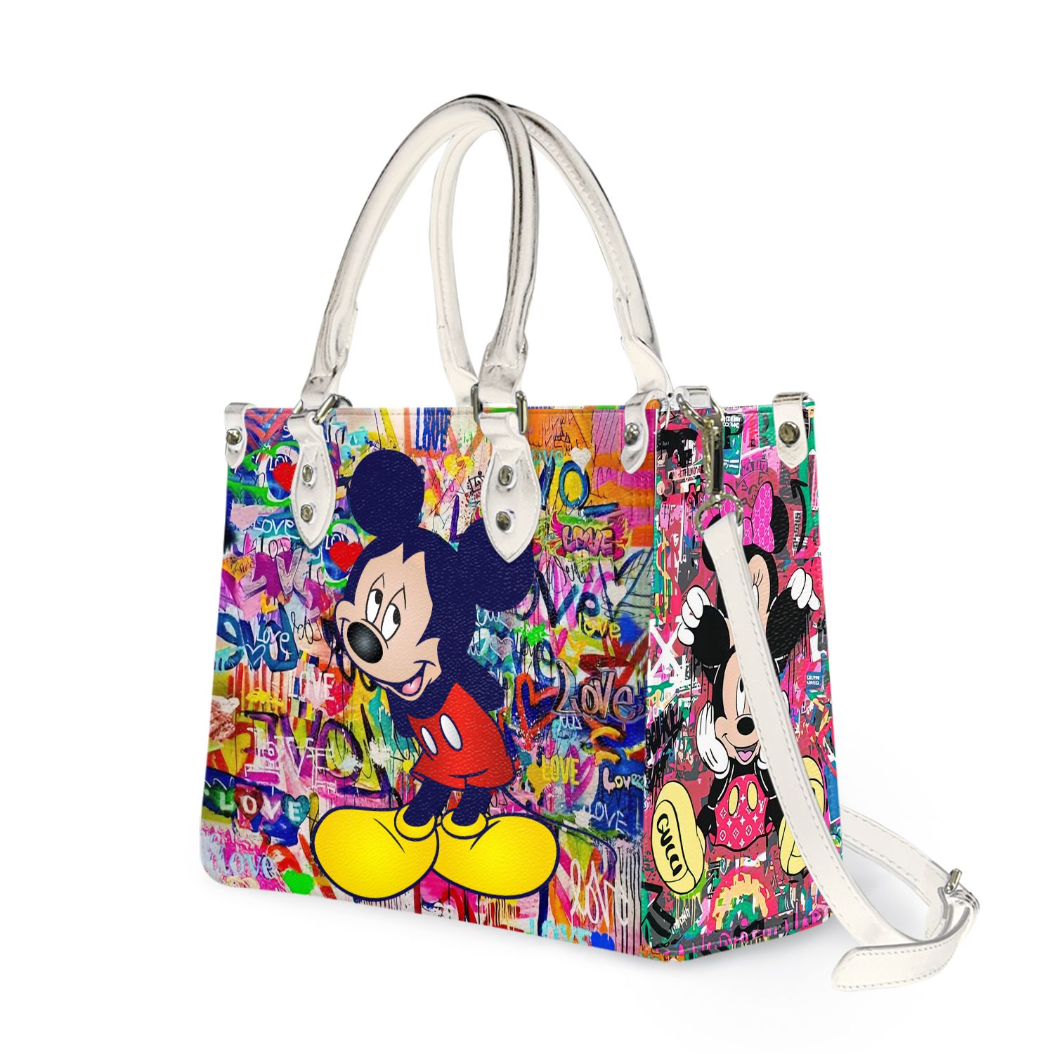 Vintage Mickey Band Leather Handbag Mickey Name Handbag