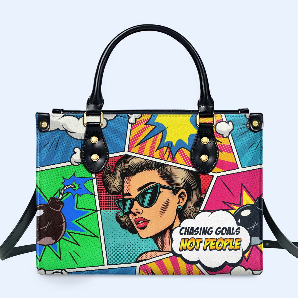 Chasing Goals Not People Personalized Custom Leather Handbag
