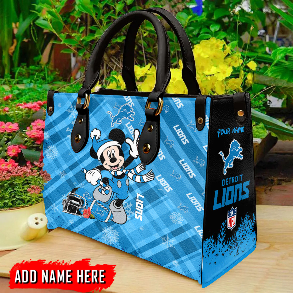 Detroit Lions Personalized Christmas Leather Hand Bag