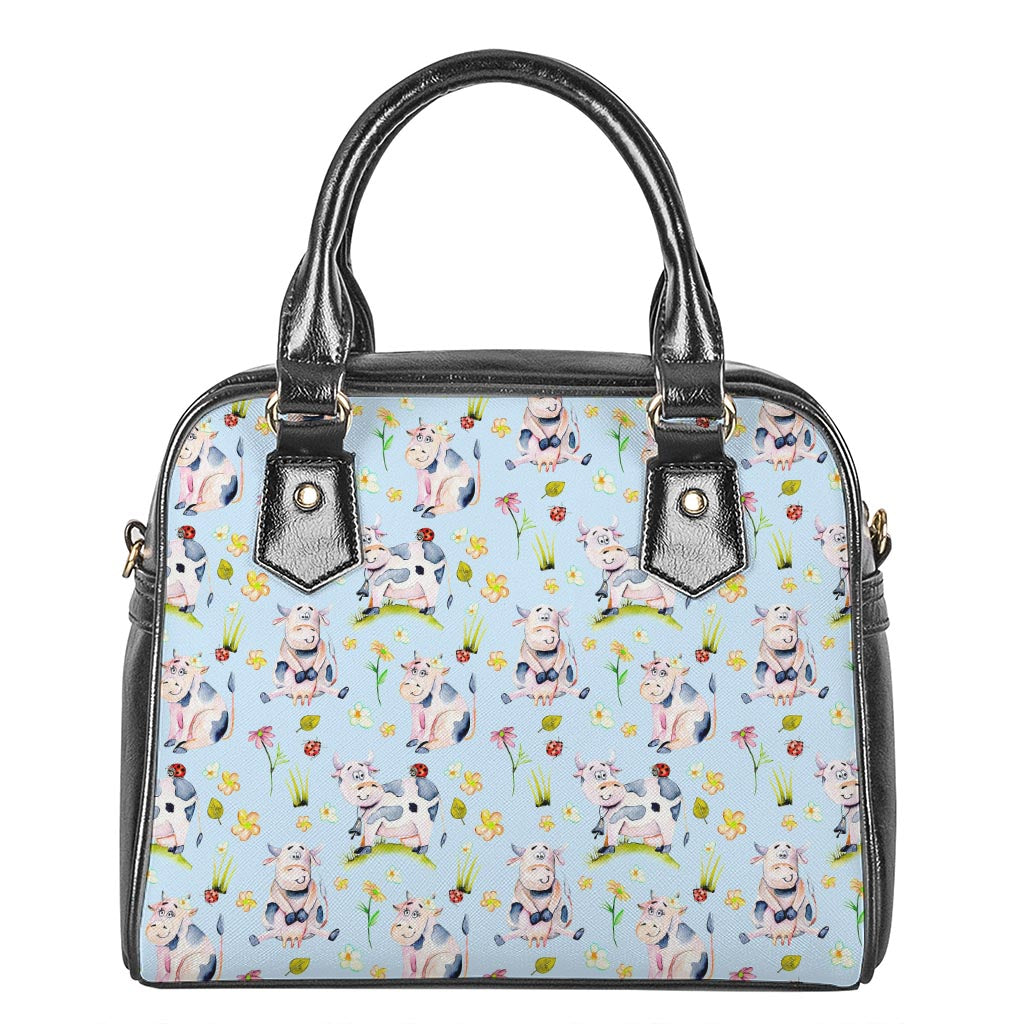 Watercolor Cartoon Cow Pattern Print Shoulder Handbag