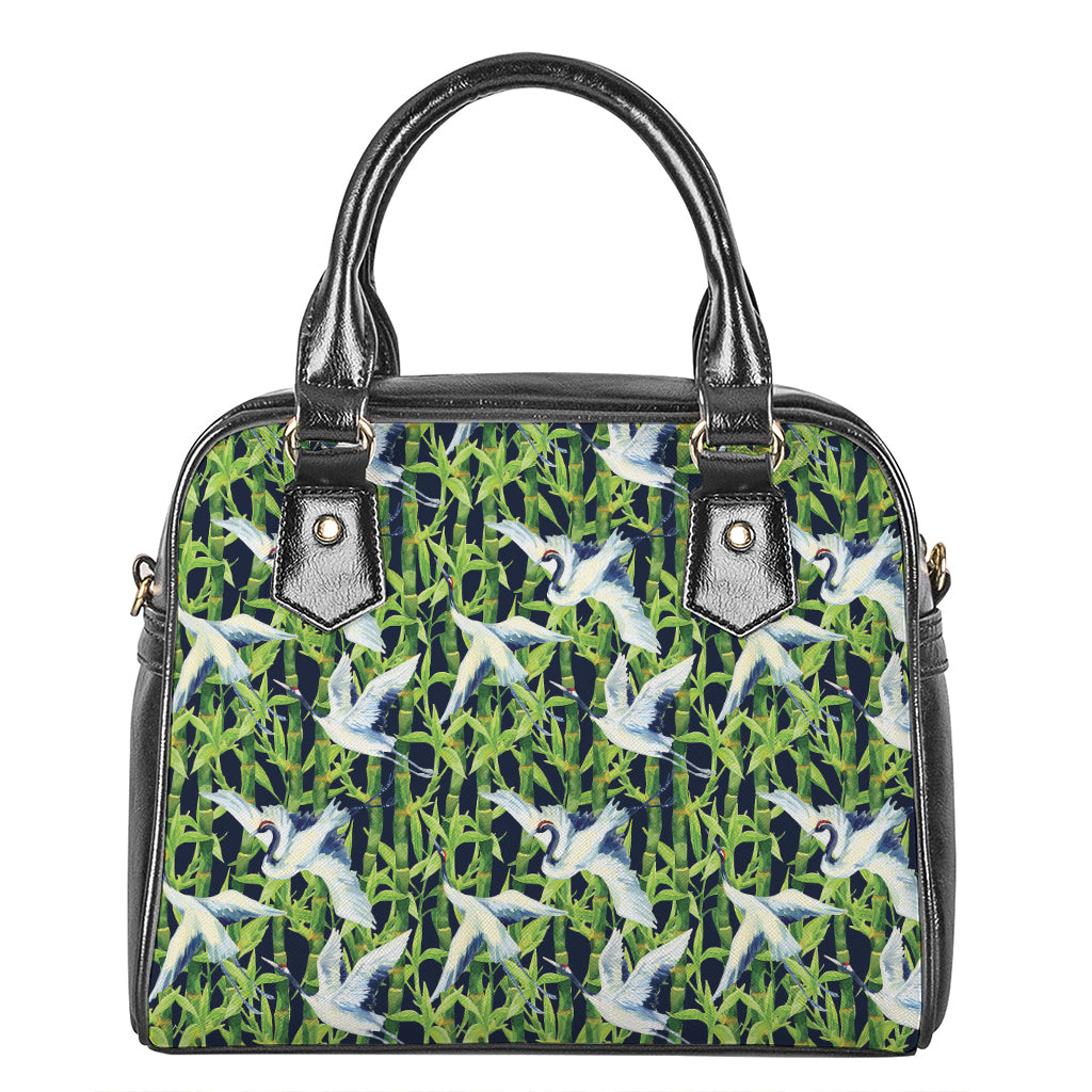 Watercolor Crane Bird Pattern Print Shoulder Handbag