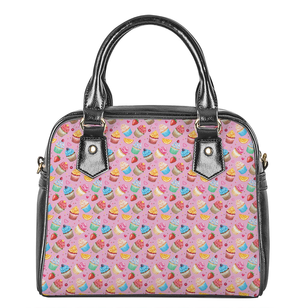 Watercolor Cupcake Pattern Print Shoulder Handbag